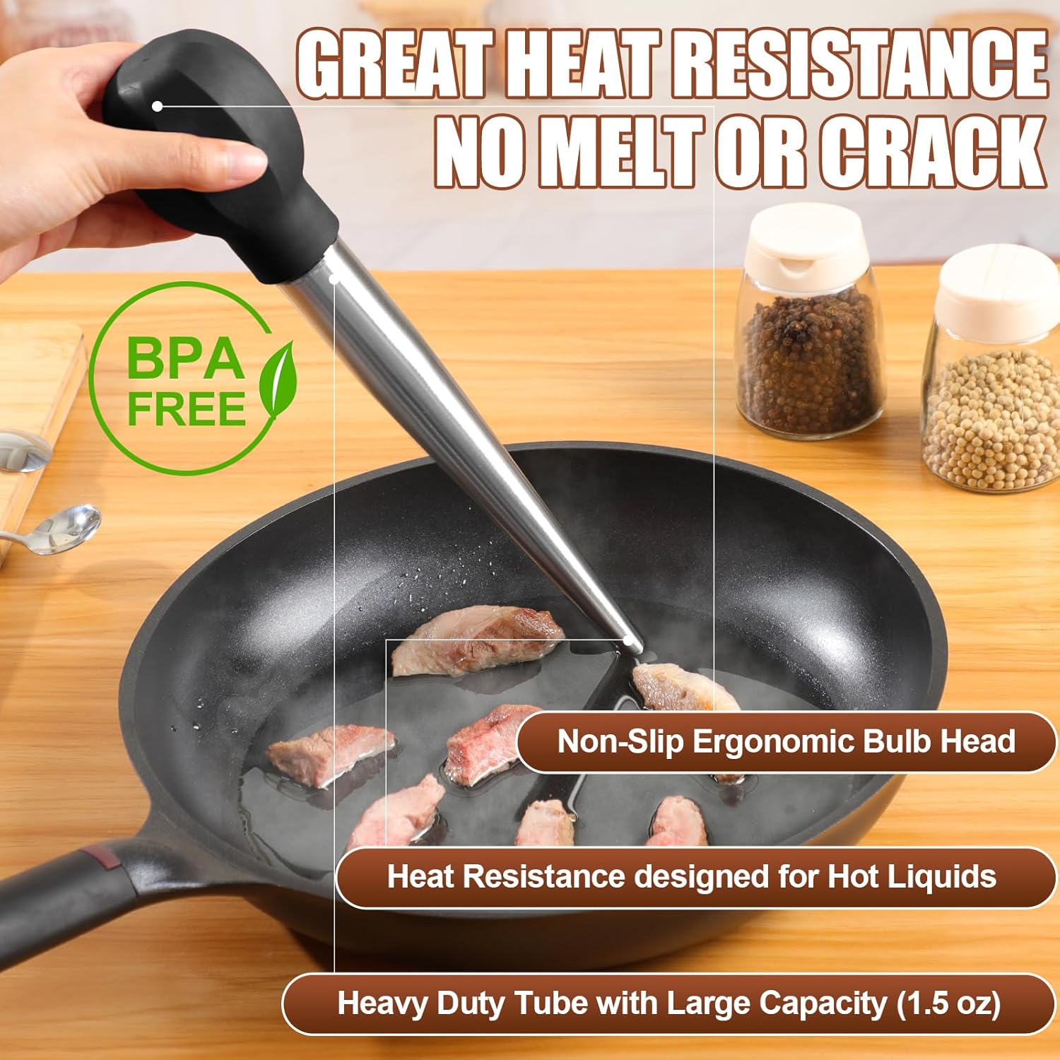 - ERGONOMIC STREAMLINE BULB HEAD: Our powerful non-slip bulb head is designed to fit perfectly in your hand, offering excellent suction power. With heat resistance up to 160℃/320℉, it ensures safety and stability. Flavor your delicious homemade turkey, chicken, or pot roast with ease and comfort.