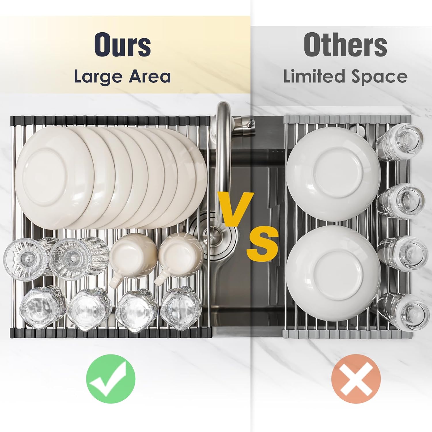 Tomorotec 17.7" x 15.5" Roll Up Dish Drying Rack Over Sink Drying Rack Sink Cover Kitchen Sink Accessories Gadget Multipurpose Organizer Foldable Stainless Steel Drainer