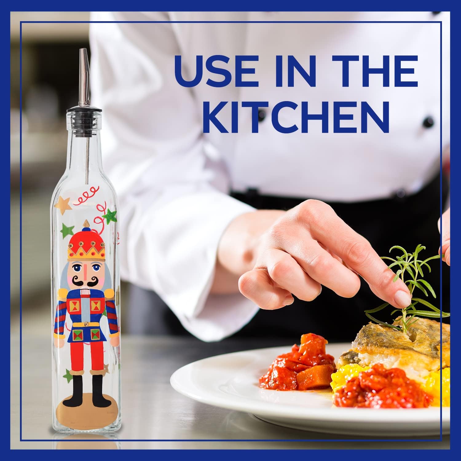 17oz Hand Painted Glass Olive Oil Bottle - 500ml Green Oil & Vinegar Cruet with Pourers and Funnel - Olive Oil Carafe Decanter for Kitchen (The Nutcracker)