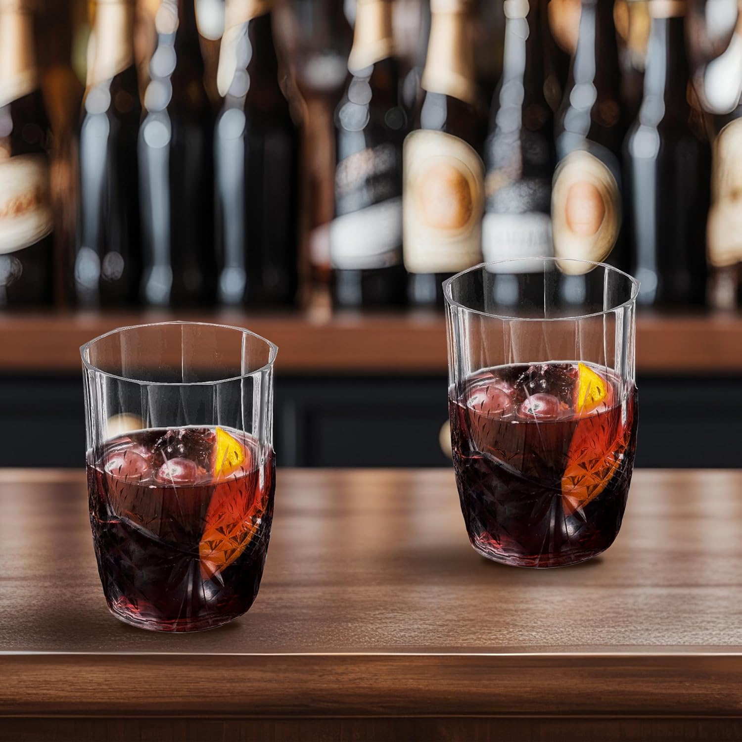 - ELEGANT CRYSTAL CUT PATTERN: These clear plastic cups feature a stylish crystal-cut design, adding a touch of class to any drink. Perfect for use as a cocktail tumbler, adding sophistication to every sip.