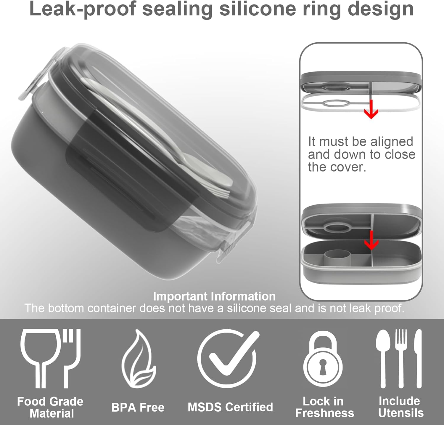 JBGOYON® Bento Lunch Box Set - 3 Stackable Containers for Adults and Kids- Includes Lunch Bag, Leak-Proof and BPA-Free - Built-in Utensil Set and Snack Bag - Dishwasher Safe(Grey Black)