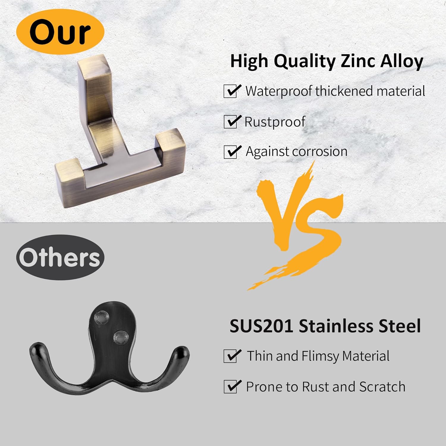 5 Pack Heavy Duty Coat Hook Wall Mount with Screw Retro Double Coat Hook Utility Hook for Coats, Scarves, Bags, Towels, Keys, Hats, Mugs (Bronze)