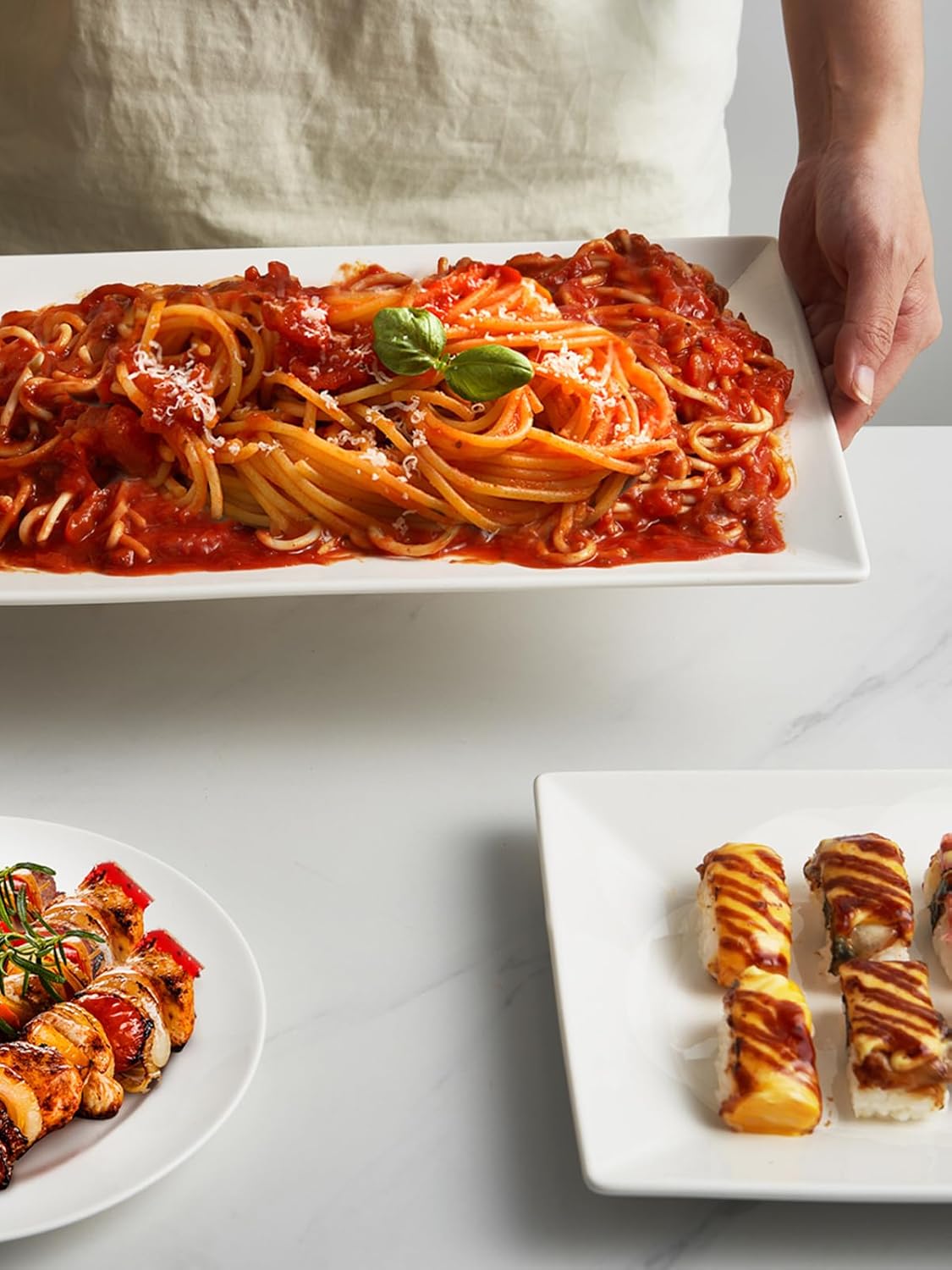 - PRACTICAL & ELEGANT DESIGN: Rectangular plates are evenly glazed by professional workmanship, these Soft white plates set look gleaming-white, great to decorate any tableware, and perfect to present your thoughtfully crafted dishes. Ideal for parties, birthdays, weddings, or daily use.