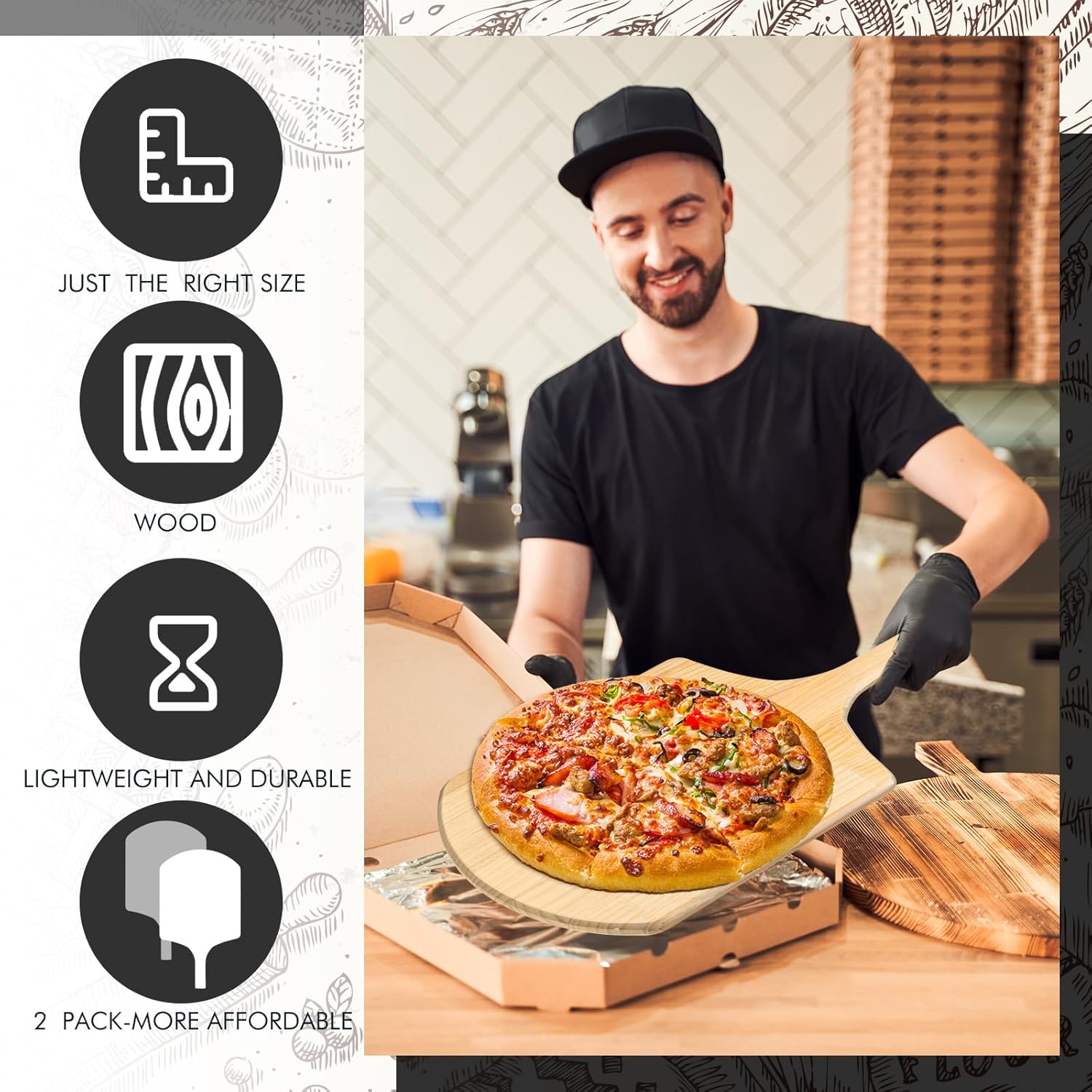 2 Pack Wooden Pizza Peel, 16 x 14 Inch Large Pizza Paddle Set with 8 Inch Wooden Handle for Oven, Stone, Pan or Grill, Spatula for Baking Bread and Cake - Indoor & Outdoor
