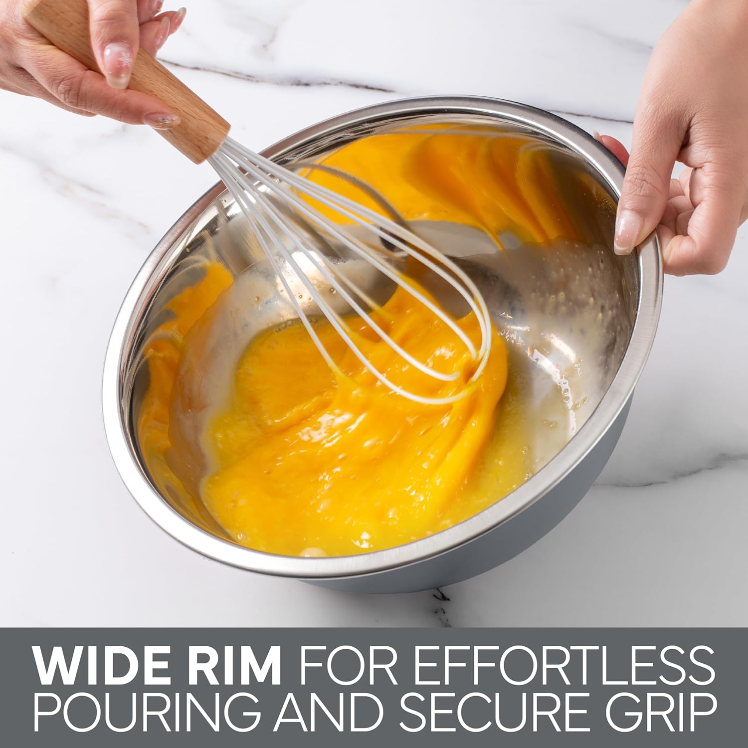 - Wide Rim- For a mess free cooking session, choose our bowls with a wide rim and lip. These features allow messy ingredients like flour, sugar and oil to be added directly into the bowl easily.