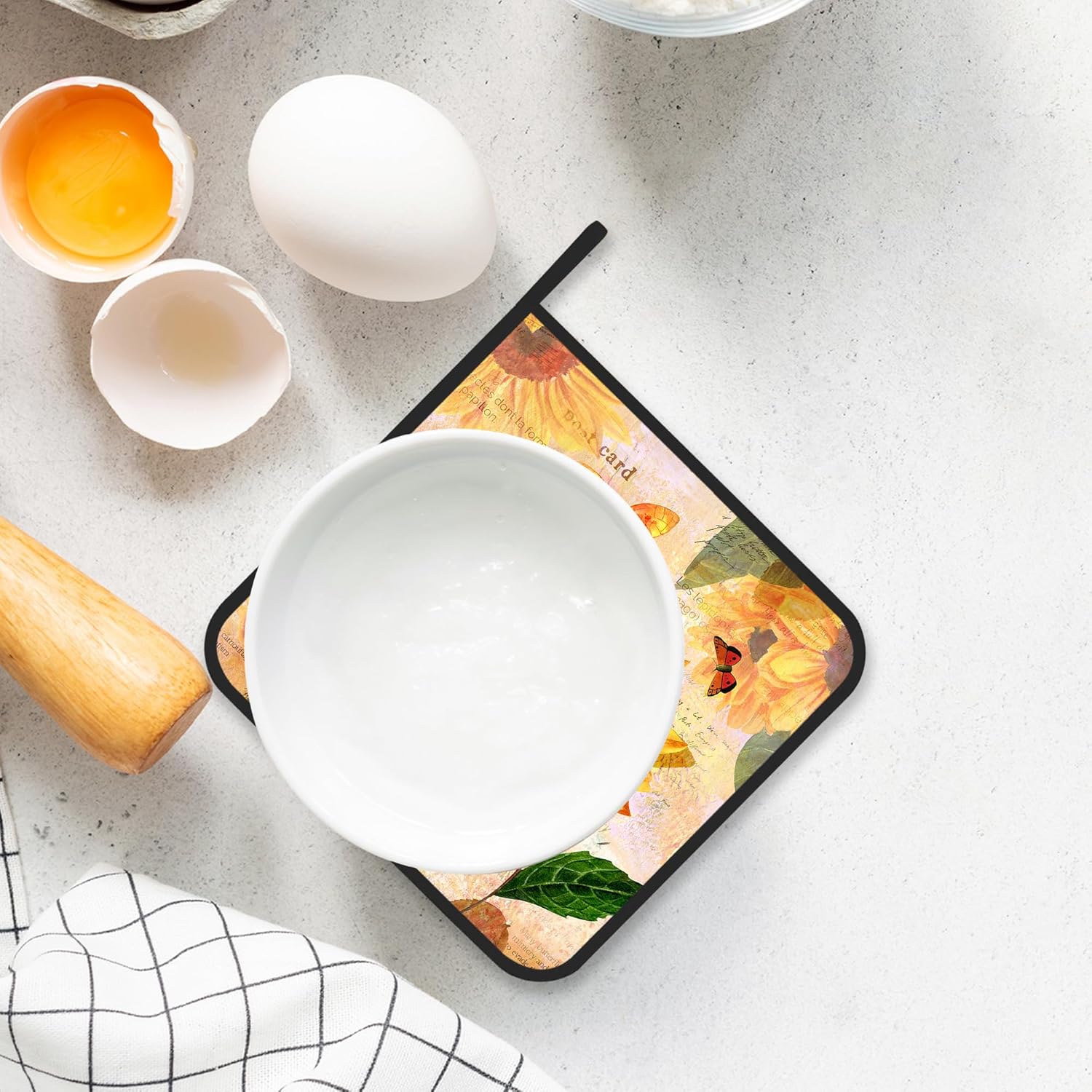 Pot Holder Set of 2,Vintage Sunflower Retro Kitchen Heat Resistant Potholder for BBQ Cooking Baking,Food Hot Pat for Women Men Kitchen Wear