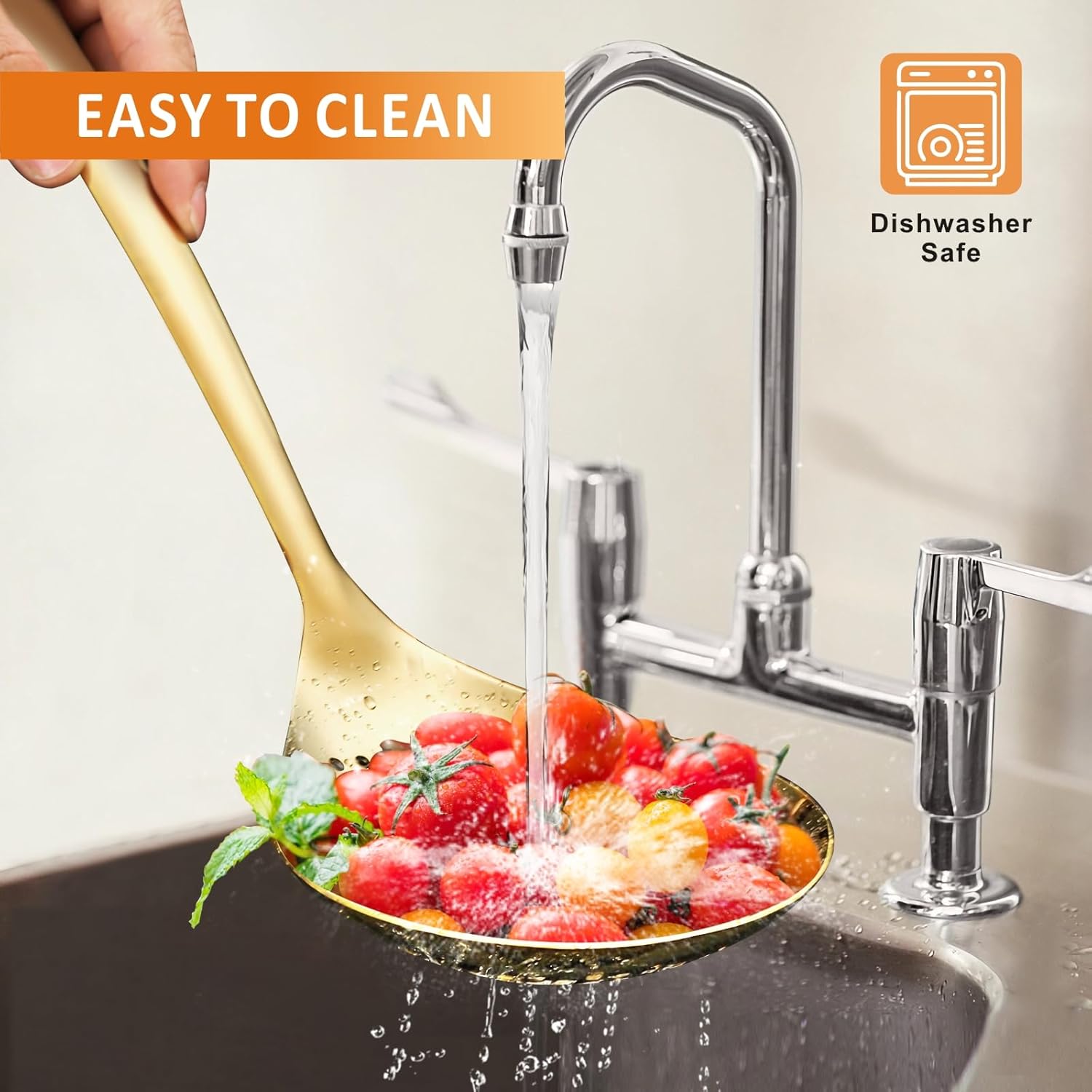 - SATISFIED AFTER-SALES SERVICE GUARANTEE - Yimi golden 304 stainless steel slotted spoon is a best kitchen tool for gifts at Wedding,Christmas, New Year.If you have any questions, please feel free to contact us! We will respond to your message promptly, within 24 hours and we will make it right even after the Amazon return window was closed.