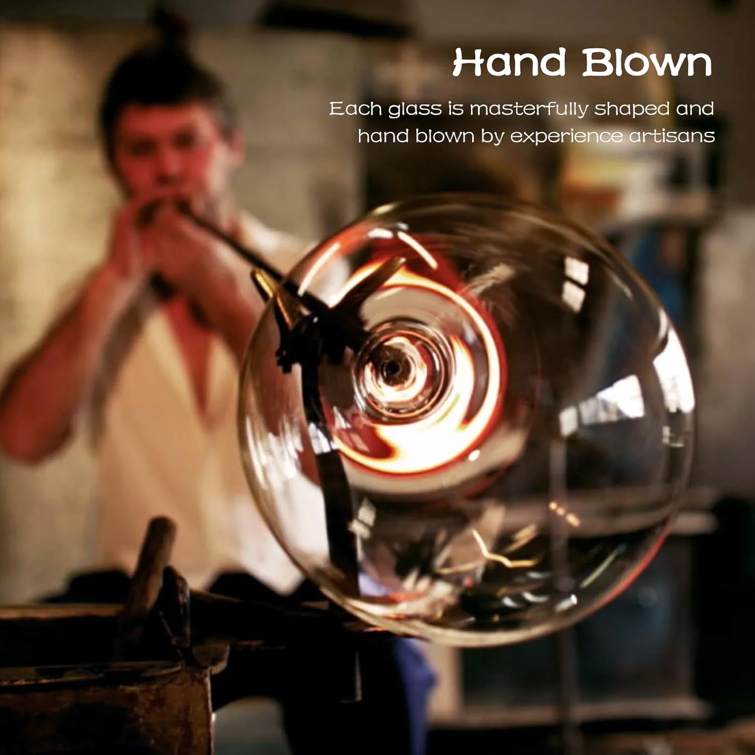 - Traditional Hand Blown Craftsmanship - These aren't the typical, machine made, basic, cheap, plastic flutes or disposable bulk wine glasses being produced the quickest way possible. Each glass is masterfully shaped and hand blown by artisans using traditional methods.The classic craftsmanship makes glass super clear & smooth & elegant, enhancing each sip while toasting with your favorite drink - a true definition of EXPERIENCE shared with that special someone.