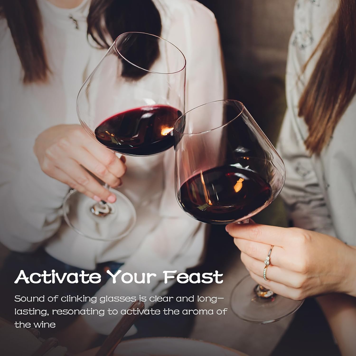 Chouggo Super Large 28Oz Wine Glasses Set of 4, Hand Blown Crystal Red Wine or White Wine Burgundy Glass, Hand Crafted by Artisans - Gifts for Women, Men, Wedding, Anniversary, Christmas, Birthday