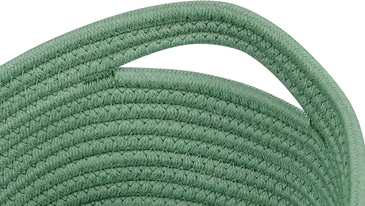 - Classy Natural Cotton Rope Storage Baskets-High quality well made. Very sturdy and a cute modern style. Durable woven rope, Long-lasting, skin-friendly, soft and attractive. You need these adorable baskets to put some supplies in, diaper, jewelry, cosmetics, makeup brushes, tea bags, storing smaller toys, toddler socks, candy