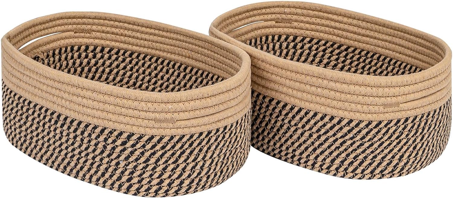 CubesLand Small Cube Shelf Closet Storage Baskets Bins Set 2,Woven Basket for Organizing/Storage, Long-lasting &Skin-friendly Storage Basket Bin,Stylish Room Decor Basket,Camel/Mixed Black Rope Basket