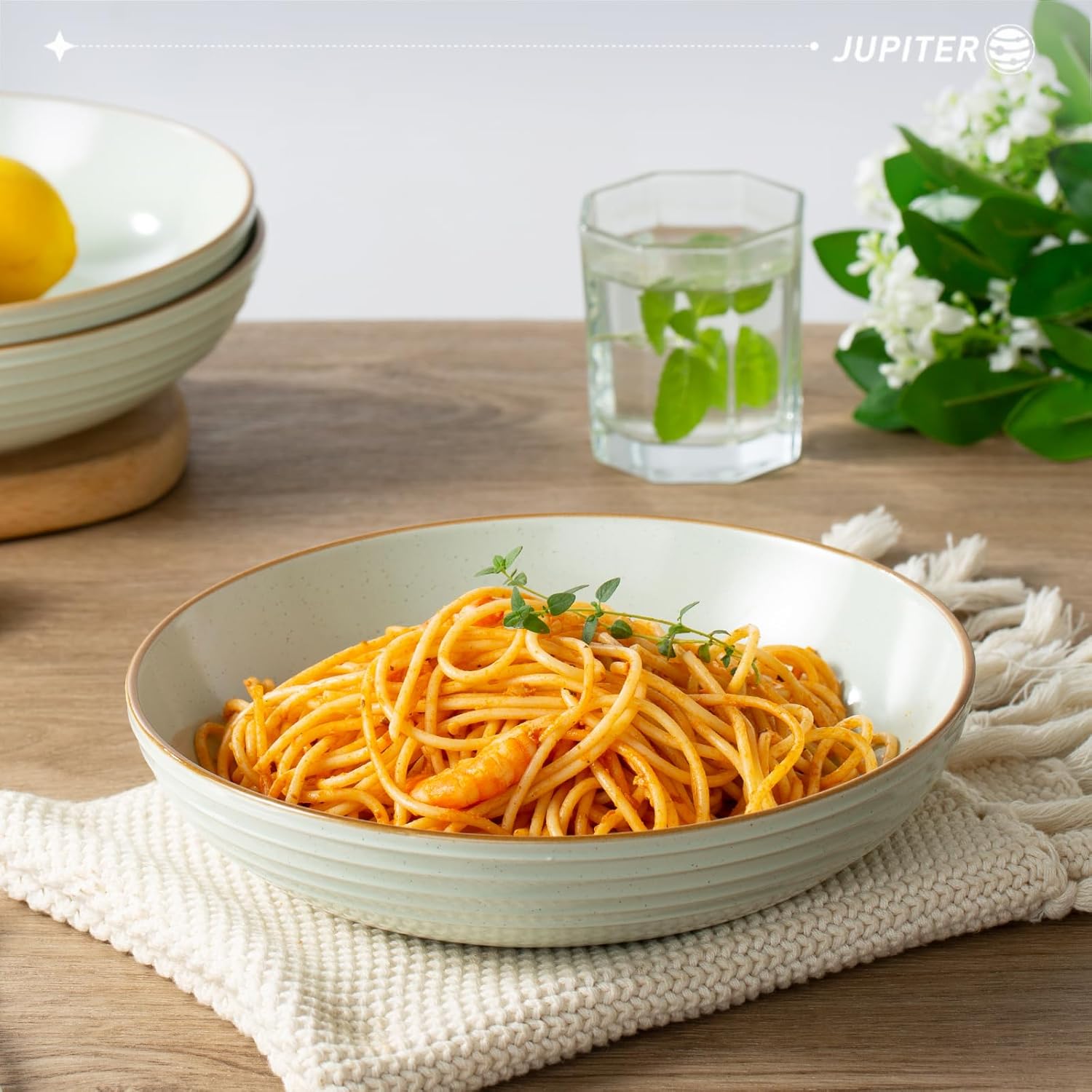- 【Attractive Design】Our pasta bowl was elaborated by artisans. Its speckles and hand-painted edge are great distinctive. The design of ring is inspired by Europa's orbit around Jupiter. Delicious food should be served in beautiful dishes.