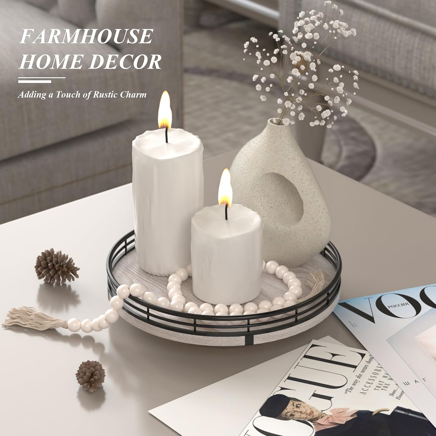 - πππππππ ππππππππ: Our farmhouse lazy Susan made of natural ash wood veneer, sturdy, durable, and beautiful in texture. It is known for its durability, strength, and aesthetic, as well as it can handle heavy use and resist wear and tear. Widely used as coffee table decor, kitchen decor, centerpiece table decortations.