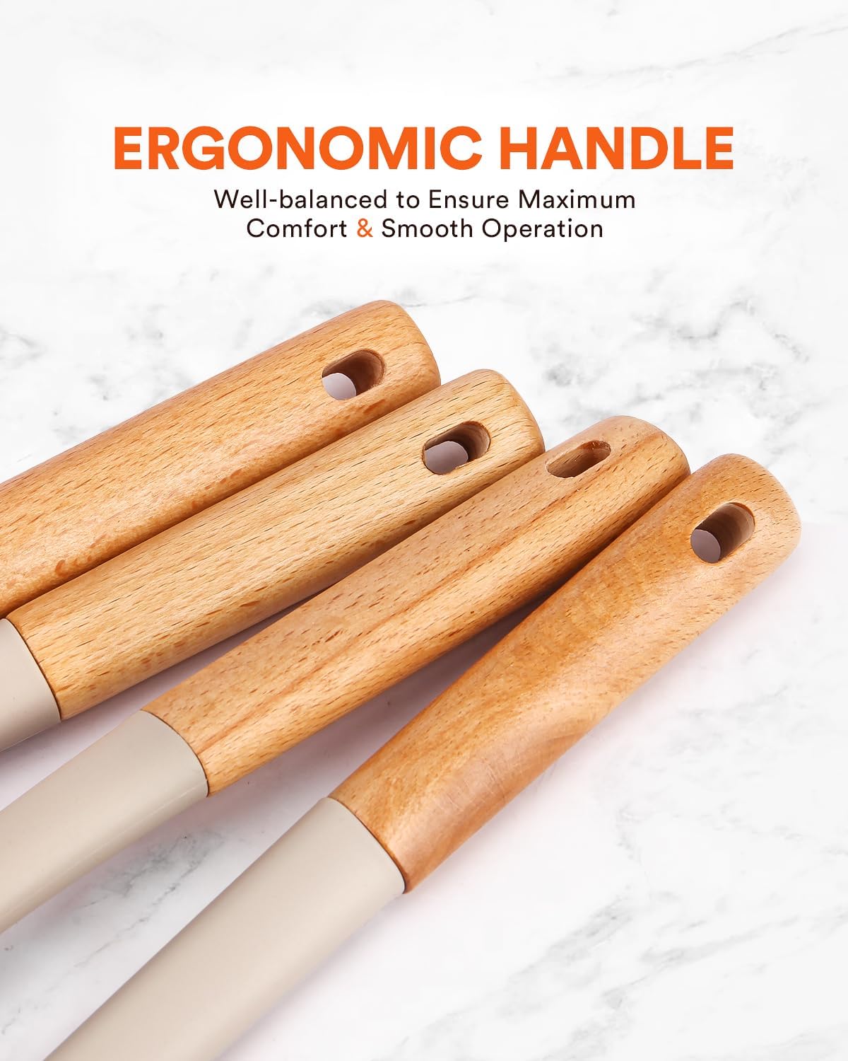 - The Most Thoughtful Design: The high-quality nylon core is more durable and keeps you away from the trouble of kitchen utensils rusting or breaking. The anti-scald Wooden handle is not easy to conduct heat and is more comfortable to hold than traditional utensils