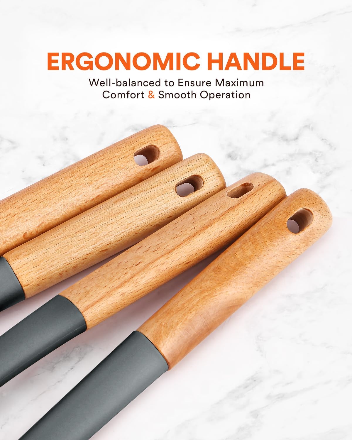 - The Most Thoughtful Design: The high-quality nylon core is more durable and keeps you away from the trouble of kitchen utensils rusting or breaking. The anti-scald Wooden handle is not easy to conduct heat and is more comfortable to hold than traditional utensils