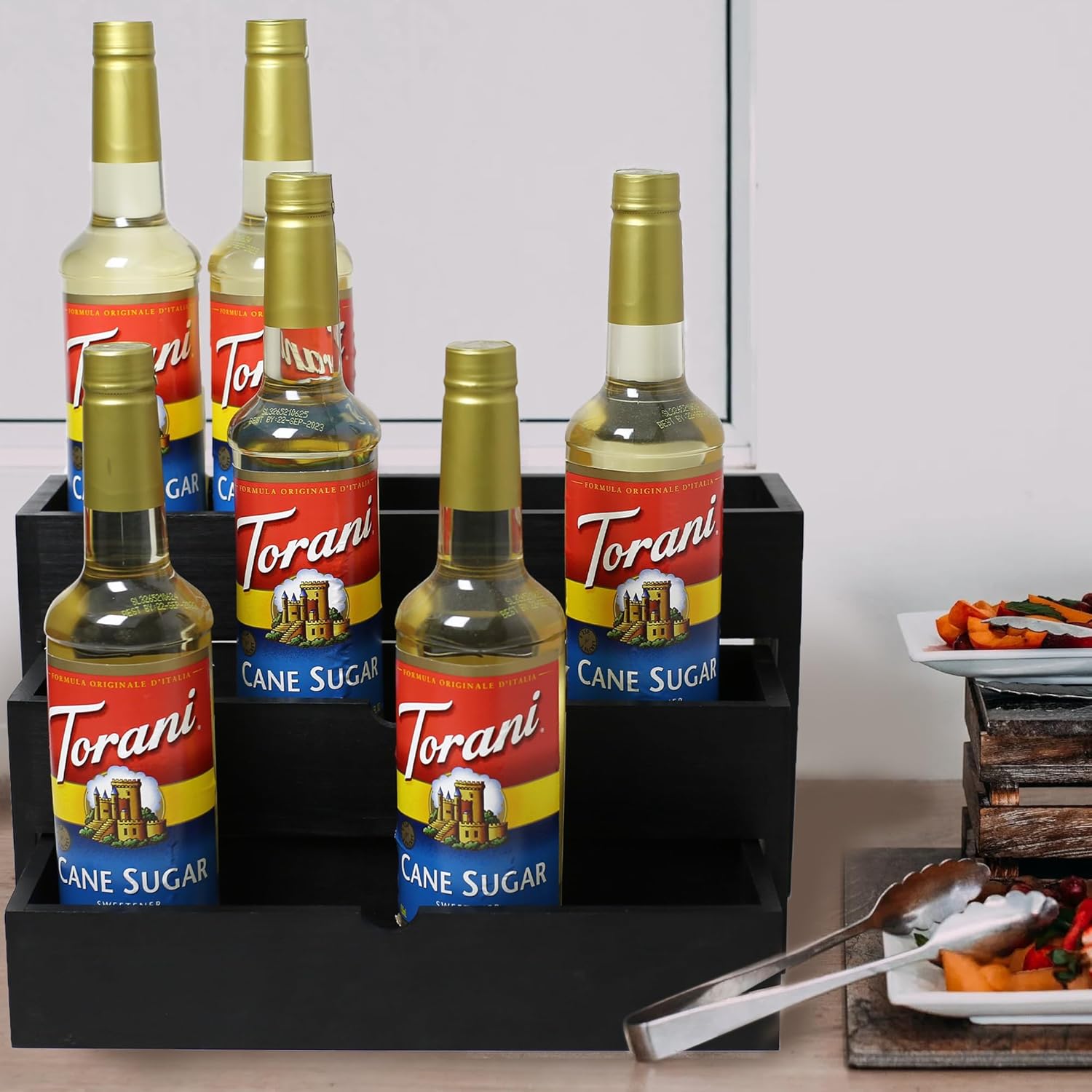 - Large Capacity: The size of the syrup rack is 15.5"(L)*13.4"(W)*9.5"(H).It organizes all flavors of syrup neatly display for convenient viewing and easy access, can hold up to 12 syrup bottles (750ml),4 standard syrup bottles on each tier