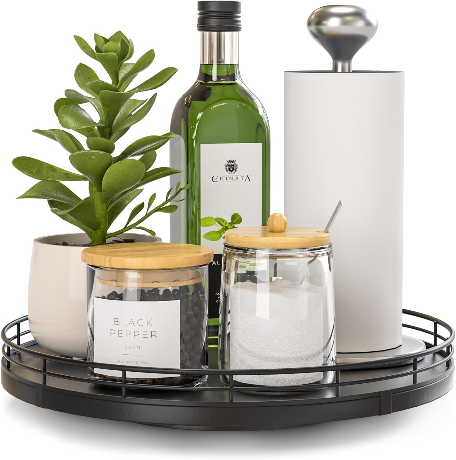 - ๐ข๐ฟ๐ด๐ฎ๐ป๐ถ๐๐ฒ ๐ฎ๐ป๐ฑ ๐๐ฒ๐ฎ๐๐๐ถ๐ณ๐: This lazy susan for table provides a spacious surface to organize your kitchen items, such as sugar, salt and pepper shakers,napkins holders, spices, olive oil or utensils, enhancing the overall aesthetics of your home; Ideal for displaying hand soap and dish soap at the kitchen sink