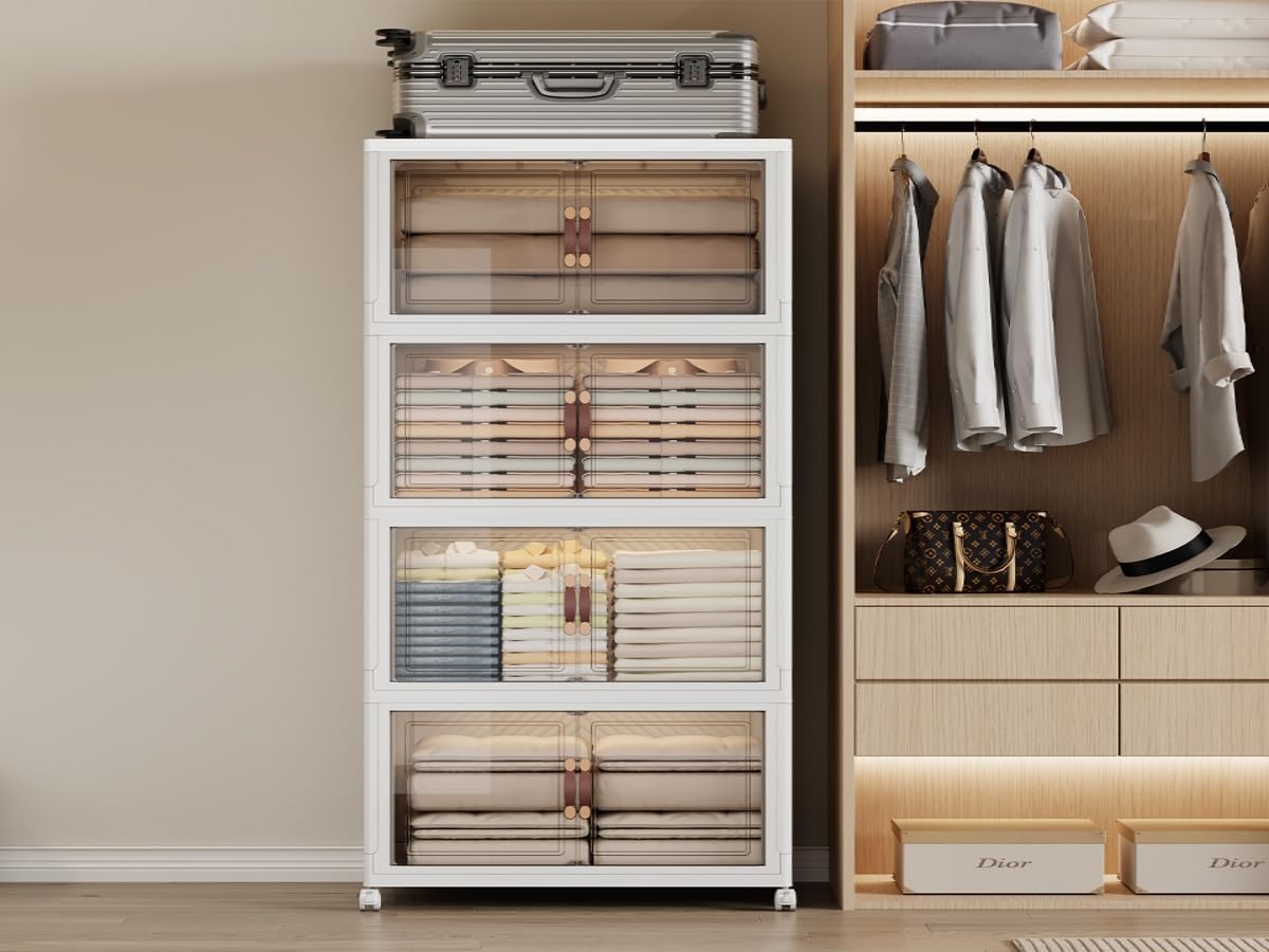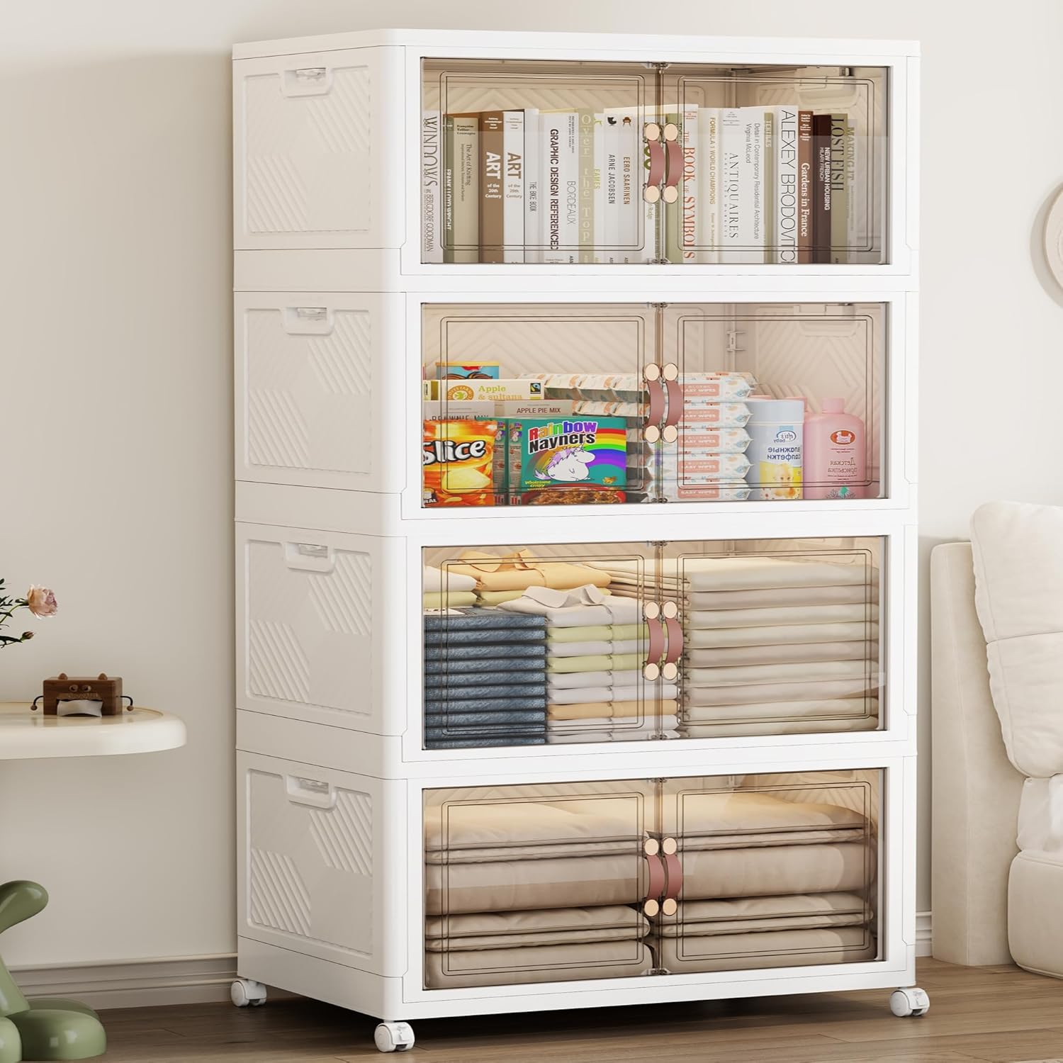 SAILUN 433QT/108 Gal Extra Stackable Storage Bins Large Collapsible Storage Bins with Wheels and Lid, Open Front Folding Closet Organizers and Storage,4Pack 26" W x 17" D x 56.7" H