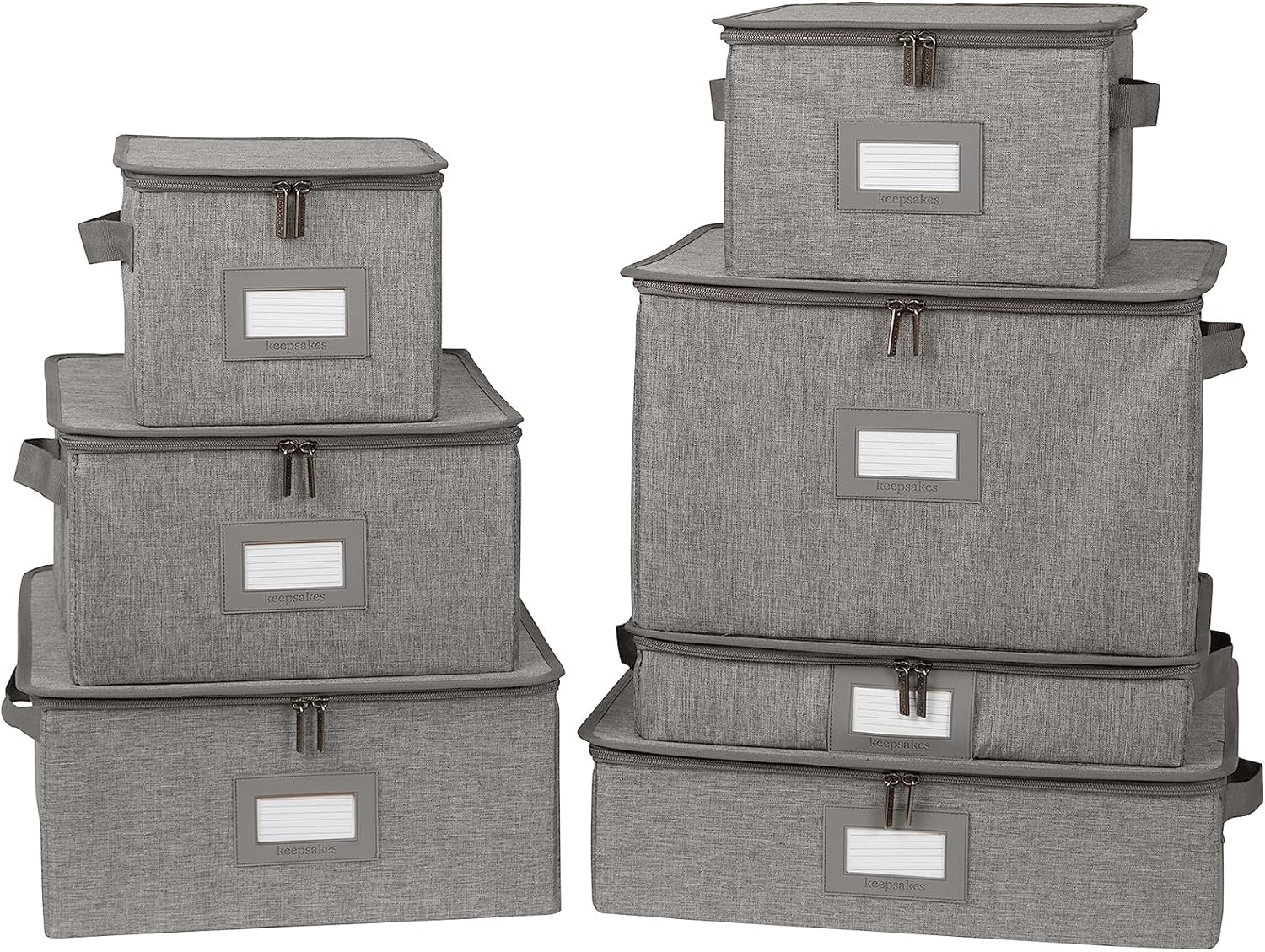 Covermates Keepsakes Dish Storage Box - Stackable, Reinforced Handles, China Storage, Grey Heather
