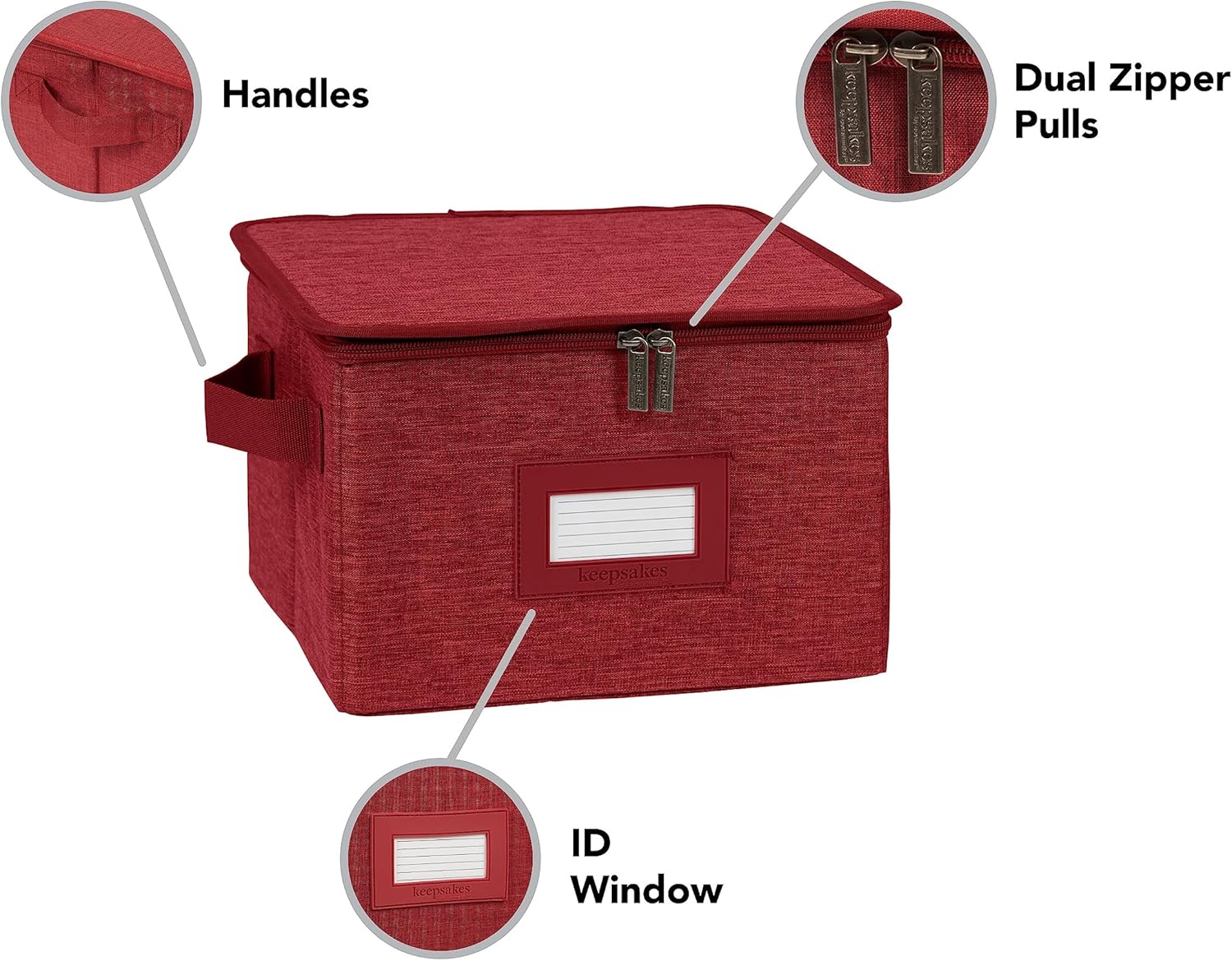 Covermates Keepsakes Dish Storage Box - Stackable, Reinforced Handles, China Storage, Red Heather