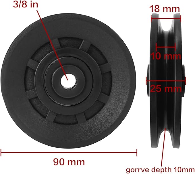 - Solid plastic pulley wheel with steel bearing, smooth movement