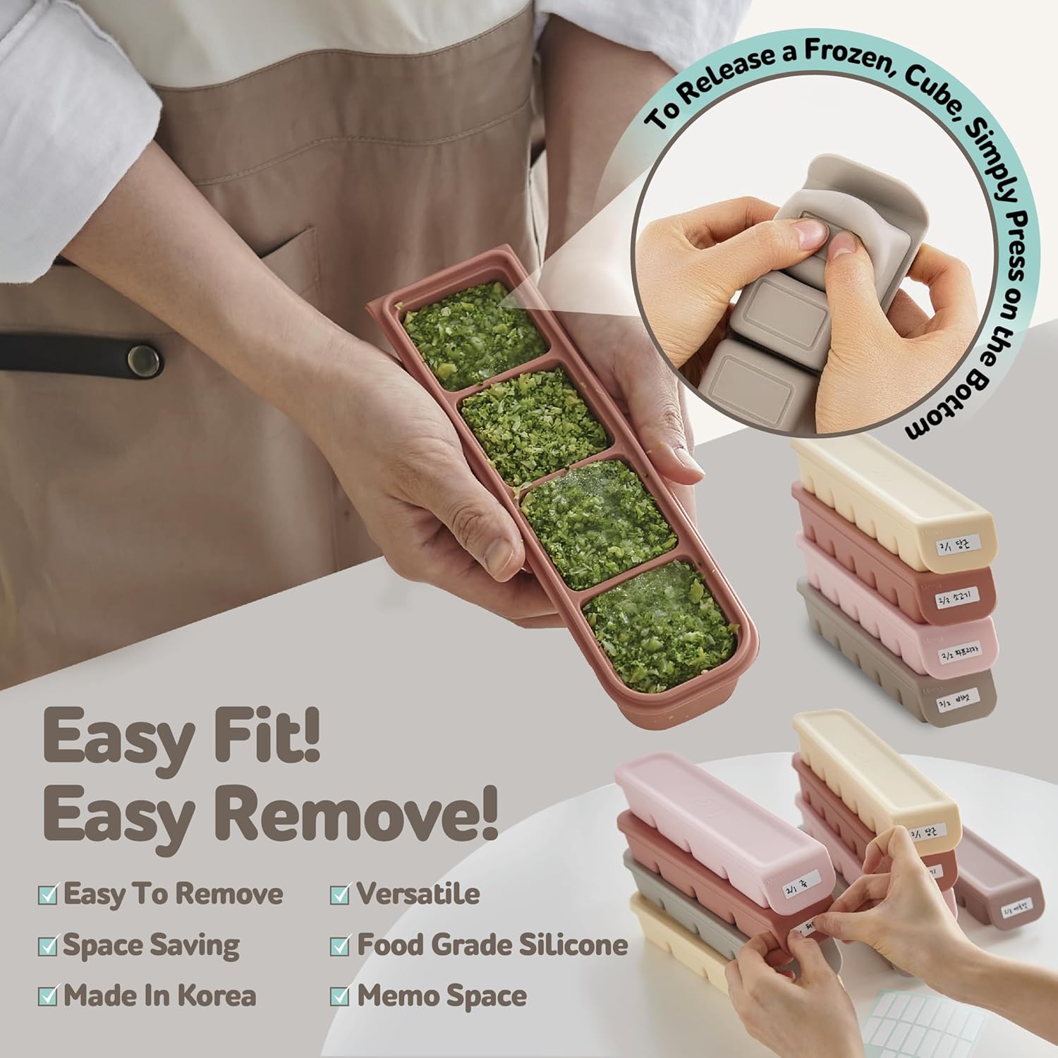 - ✅ Slim and Compact Design: These silicone freezer containers are available in 4, 6 or 12 compartments, featuring a stackable, ultra-slim and ergonomic design for easy storage. The ultra-wide area which receives cold air ensures a faster freezing process of the contents!