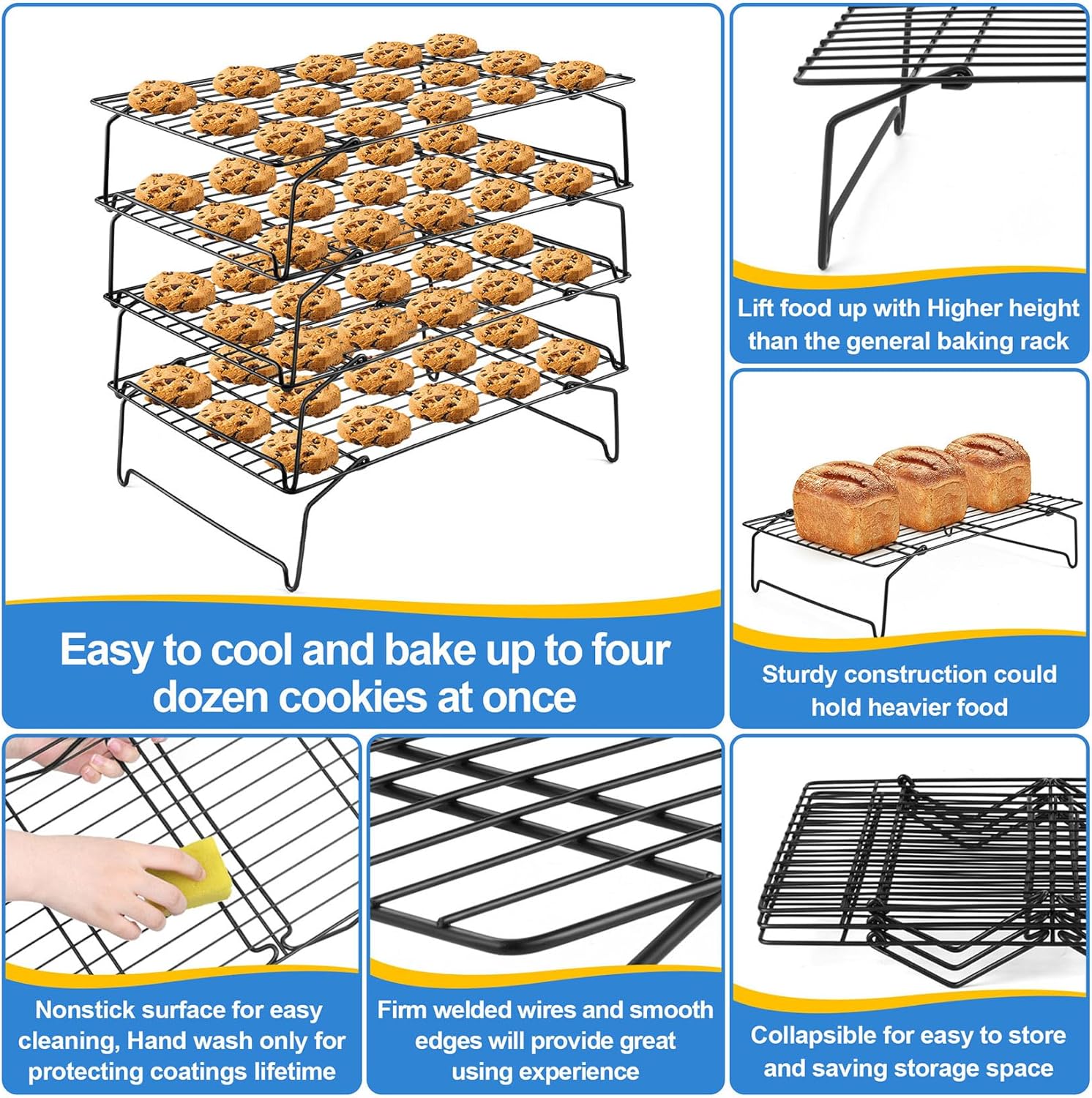 - 【NONSTICK & EASY CLEAN】Overall wire surface is finished by nonstick coatings, which makes surface smooth and ensures baked food easily come off the rack, Easy clean up in a breeze, Smooth edges without rough spots for protecting your hand, Simply wipe racks with soft dishcloth under warm soapy water, Hand-wash recommended
