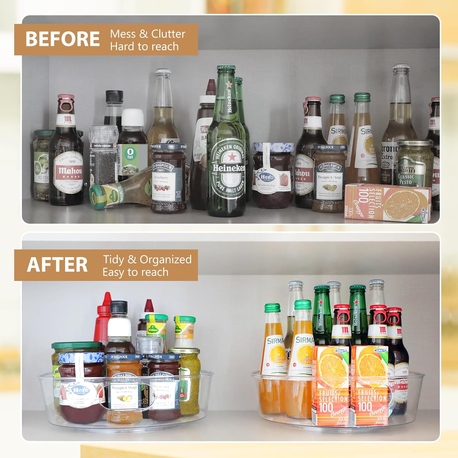 - SAFETY & HIGH QUALITY - This lazy susan cabinet organizer is made of premium durable PE and BPA-free, very fall resistant, offering a long-term durability and safety for food, which is easy to clean with mild soap and water. NOTE: DON'T PUT IT IN DISHWASHER