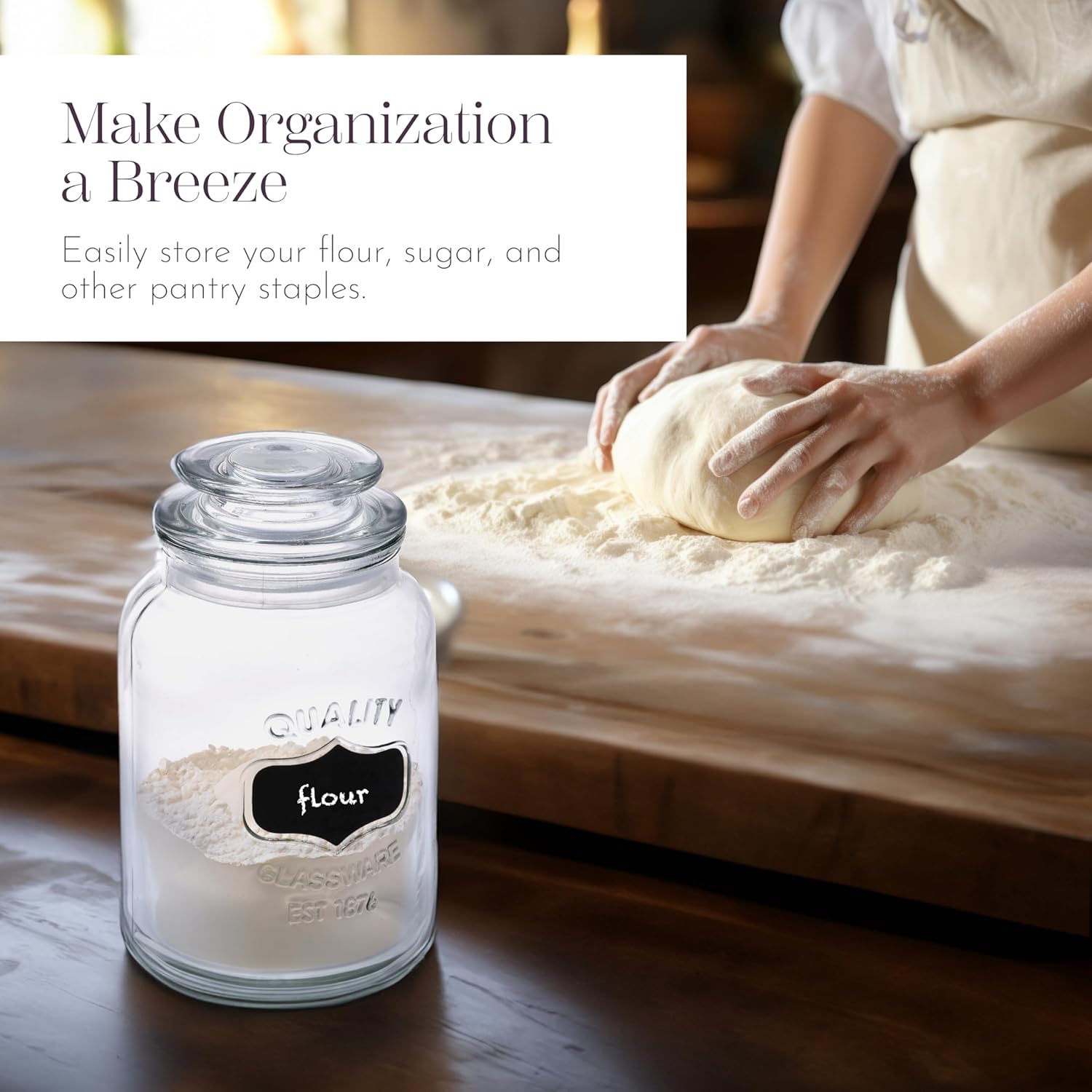 - EXCEPTIONAL QUALITY AND SAFETY: Made from durable, lead-free glass, our kitchen jars keep food fresh and safe, making them an ideal glass flour container or stylish pantry storage solution.