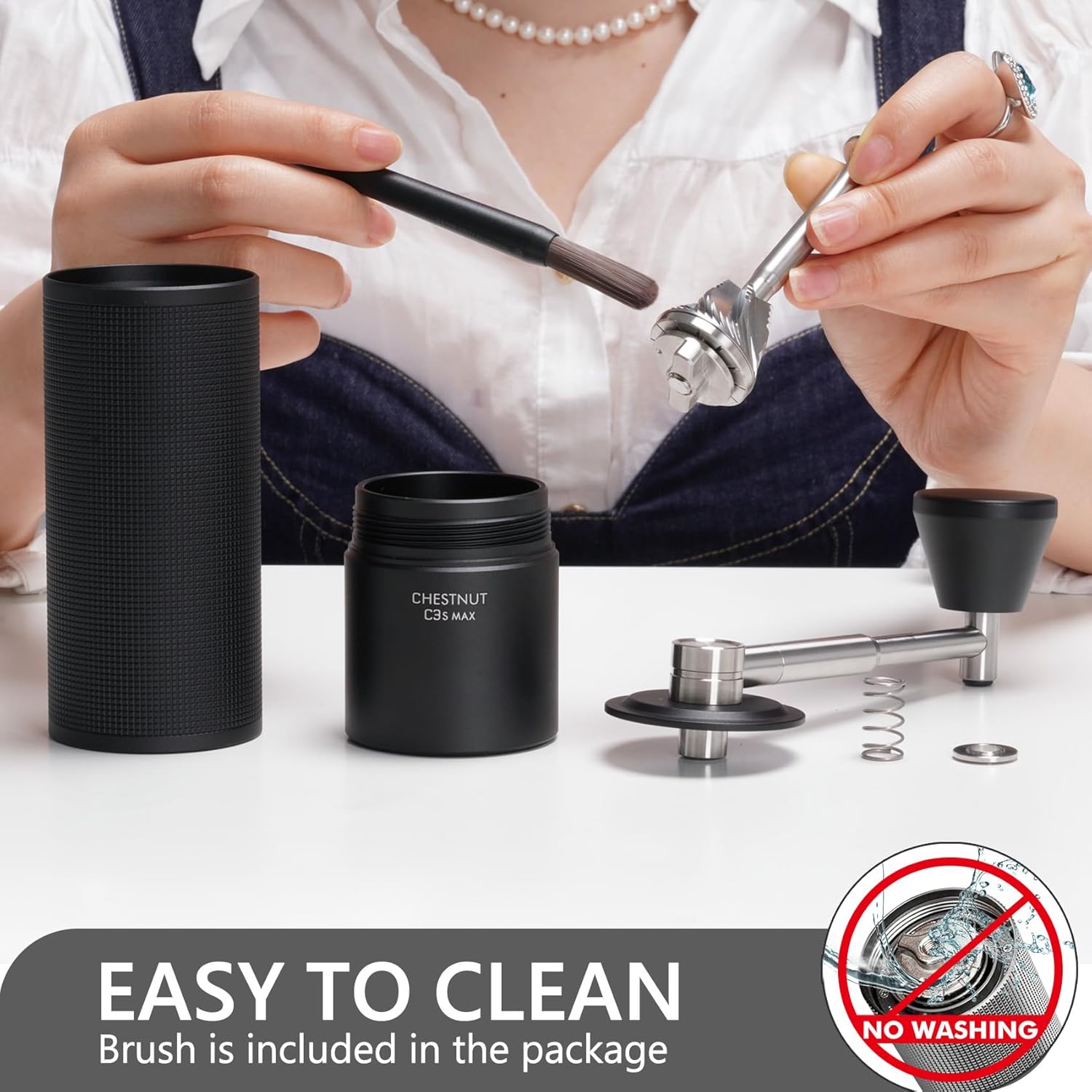 - [ C3 Max Pro Upgraded to C3S Max Full Metal Aluminum Body ] Crafted with an all-metal aluminum alloy body, the TIMEMORE C3S Max manual coffee grinder offers outstanding durability and longevity. This sturdy construction not only withstands frequent use but also protects the internal components from any potential damage. Additionally, the aluminum alloy body contributes to efficient heat dissipation during grinding sessions, preventing overheating that can compromise the delicate flavors of your coffee beans