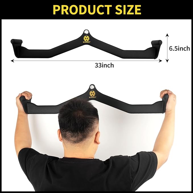 - 【HIGH QUALITY】 :LAT Pulldown Attachments is made of high-quality solid steel, and the exterior is coated with thickened rubber coating,size 33""X6.5"", Ergonomic handle design than other traditional round lat bar handles, focus on the targeted back muscle group.