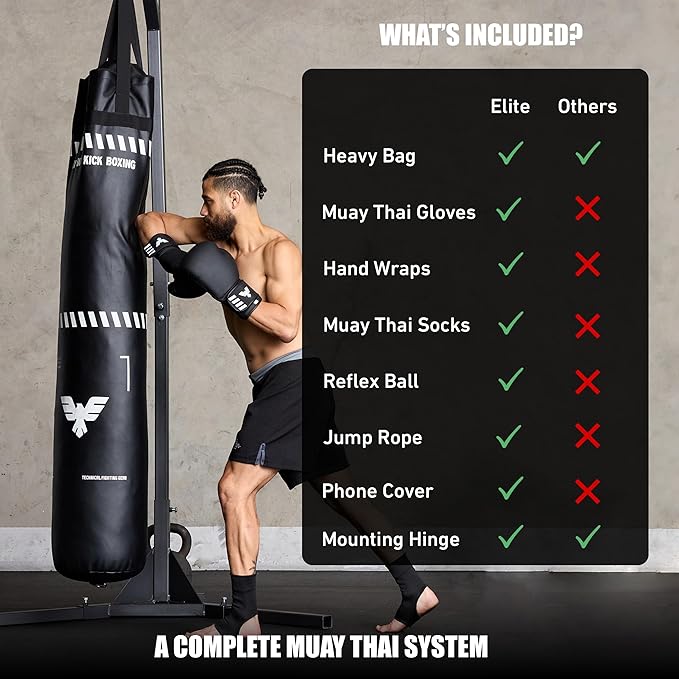 - BLACK COLOR MUAY THAI BAG: Elite adults Muay Thai bag is available in a striking bag black color scheme; depending on the layout of your workout space, this muay thai training kickboxing bag equipment gear could either stand out against the bright interior or blend in with the darker walls, ceiling, or floor; if you feel hanging punching bag for men is out of place, it is easy to carry muay thai punching bag between rooms & set this muay thai bag for men and women up in another location.