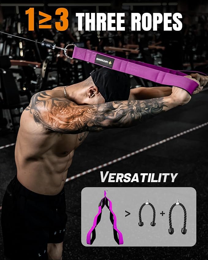- 🏋【GREATER RANGE OF MOTION】Extra-long tricep rope attachment to pull back farther and lower than ever before. Use the lower handle of this triceps pull rope to enjoy a greater range of motion. Or grab the higher handle and use it as a regular workout rope. Make the most of your triceps extensions and every repetition of the other exercises for maximum effect.