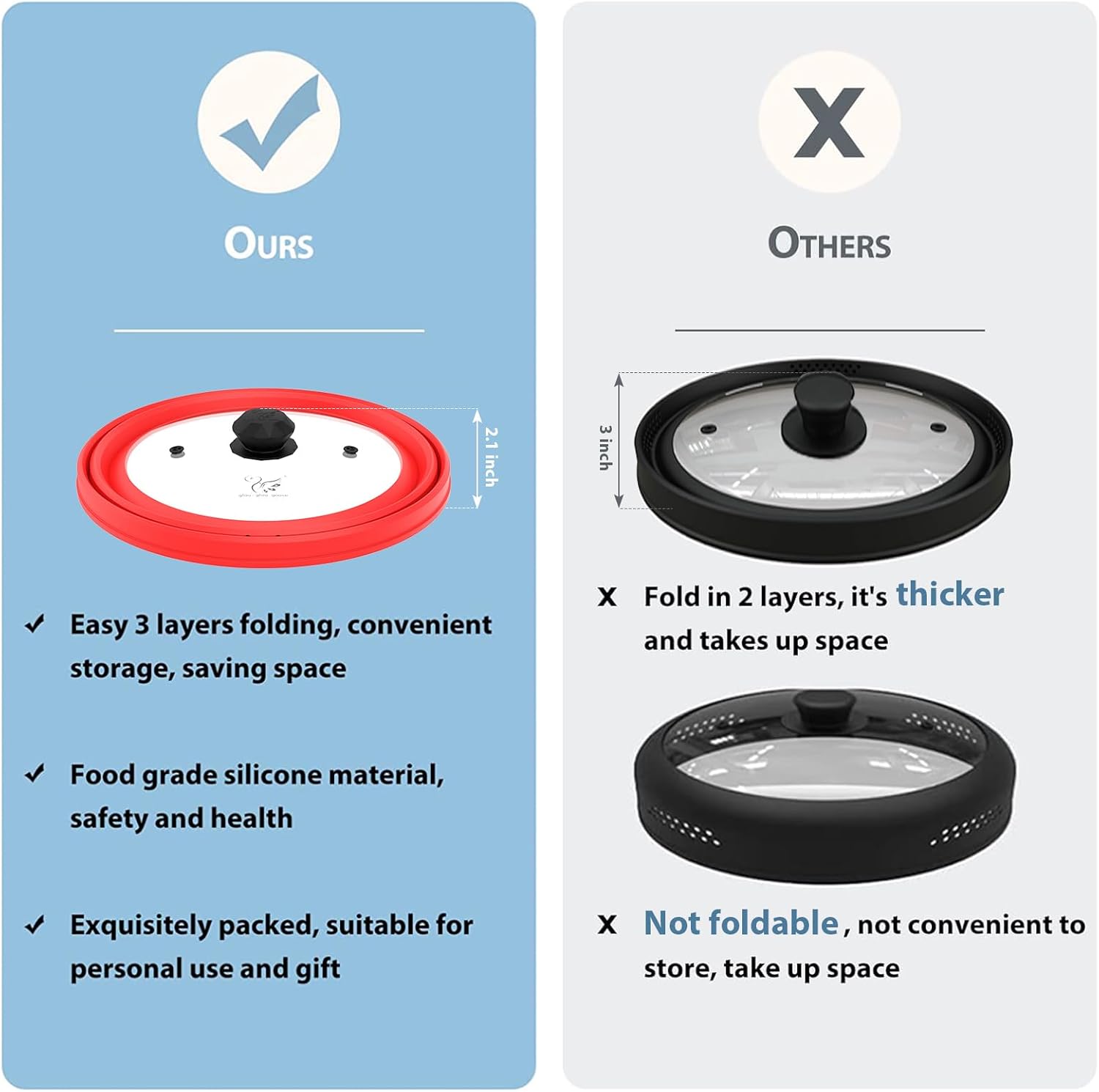 Microwave Splatter Cover Vented Glass Splatter Guard Lid with Collapsible Silicone for Food as Pot Cover Plate 10.8 inch for 6 7 8 9 10 inch Plate Bowl Red