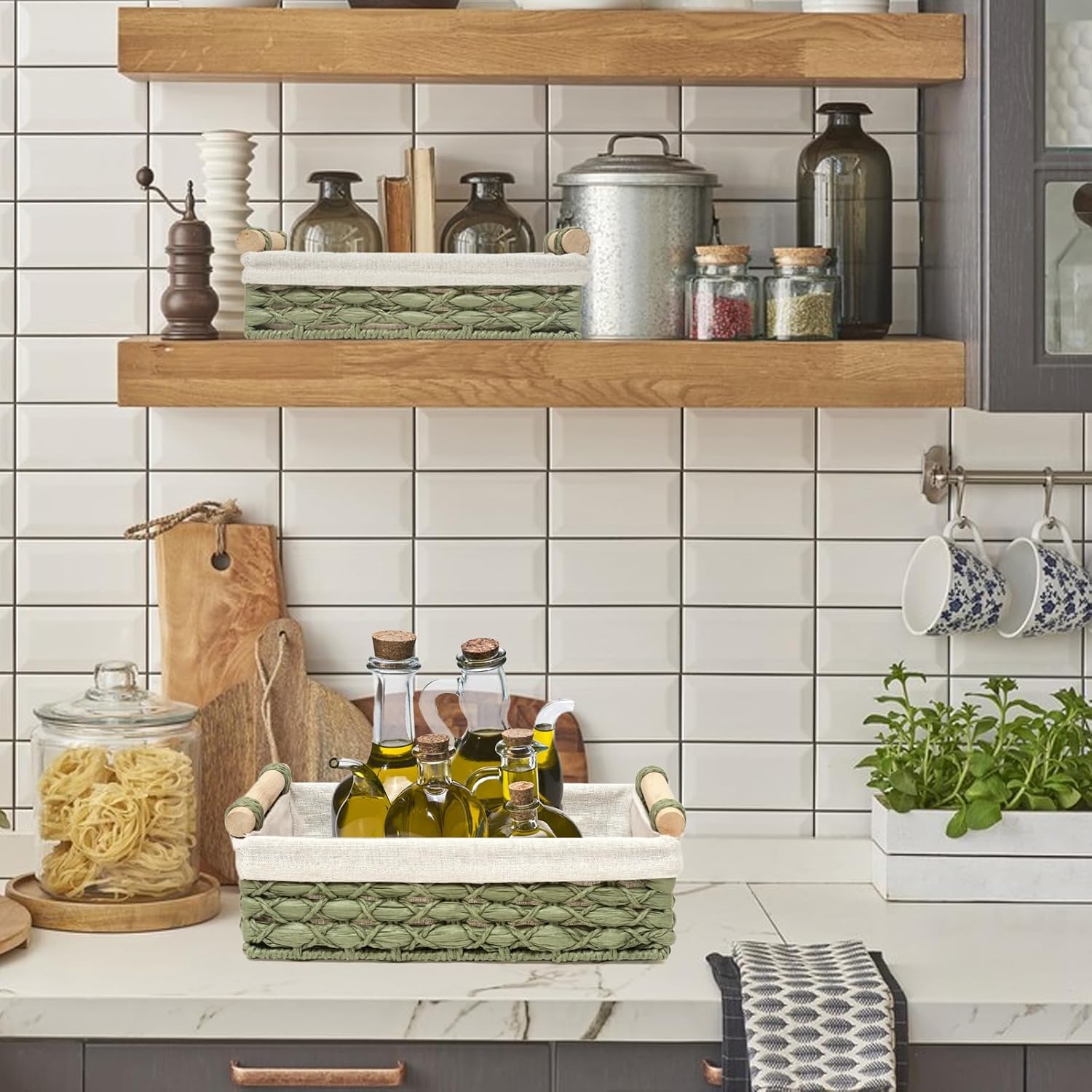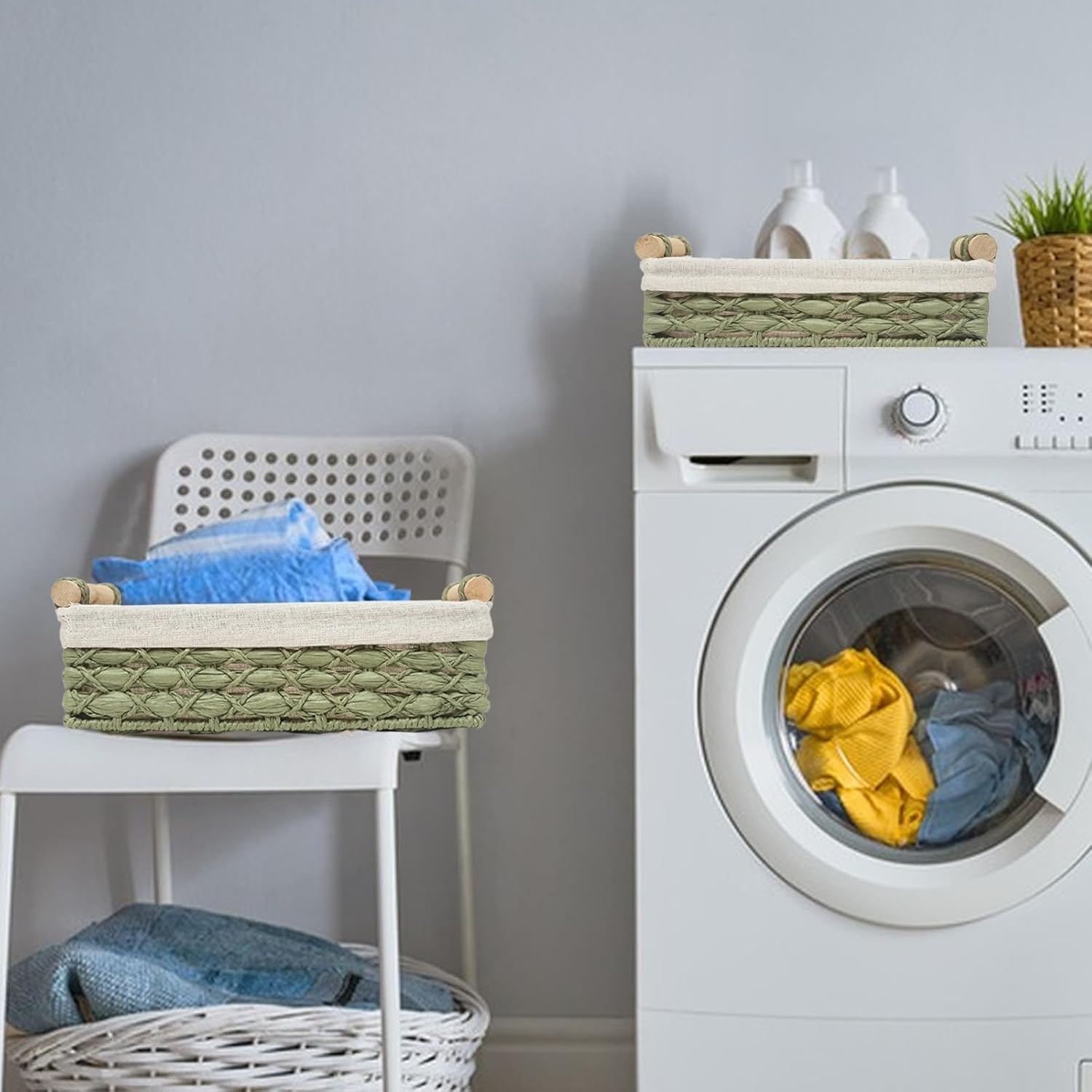 Storage Basket Wicker Baskets for Organizing with Handle Decorative Storage Bins for Countertop Toilet Paper Storage Basket for Toilet Tank Top Small Baskets Set (Set of 2,Green)