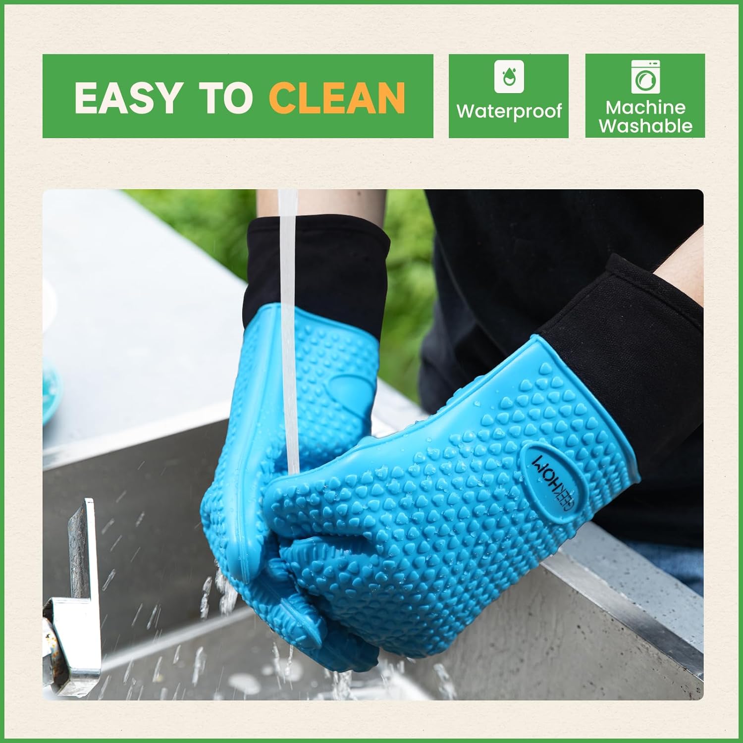 - EXCELLENT HEAT RESISTANCE: The oven mitts is made of BPA Free silicone, heat-resistant from -104℉to 446℉. Environmentally Friendly, security and durable.