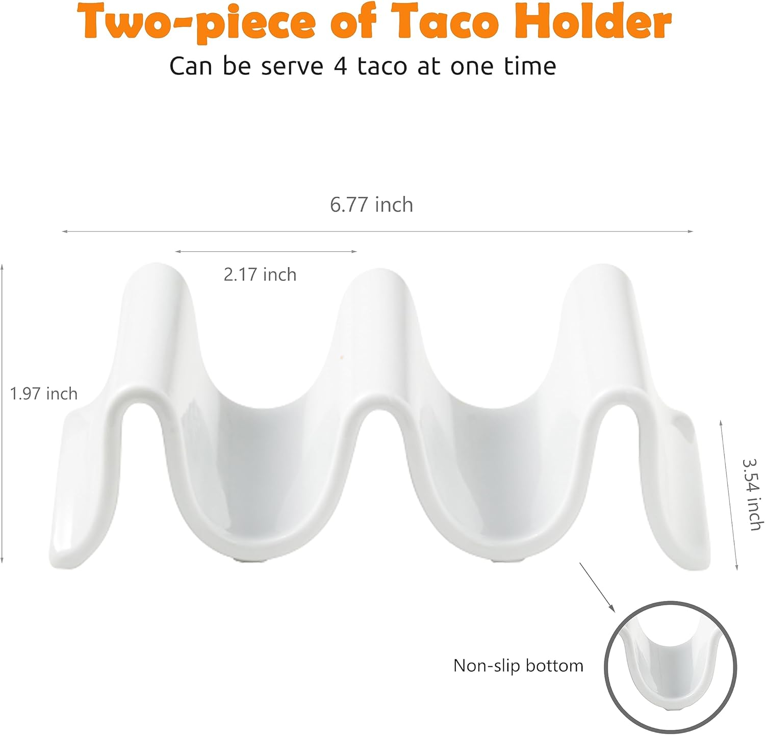 - U-shaped Design: Compared with regular taco plates, our taco tray with unique U-shaped grooves keeps tacos always upright instead of splayed out all over the plate or floor. Also, it is safe to place the taco holders in the oven or grill, dishwasher