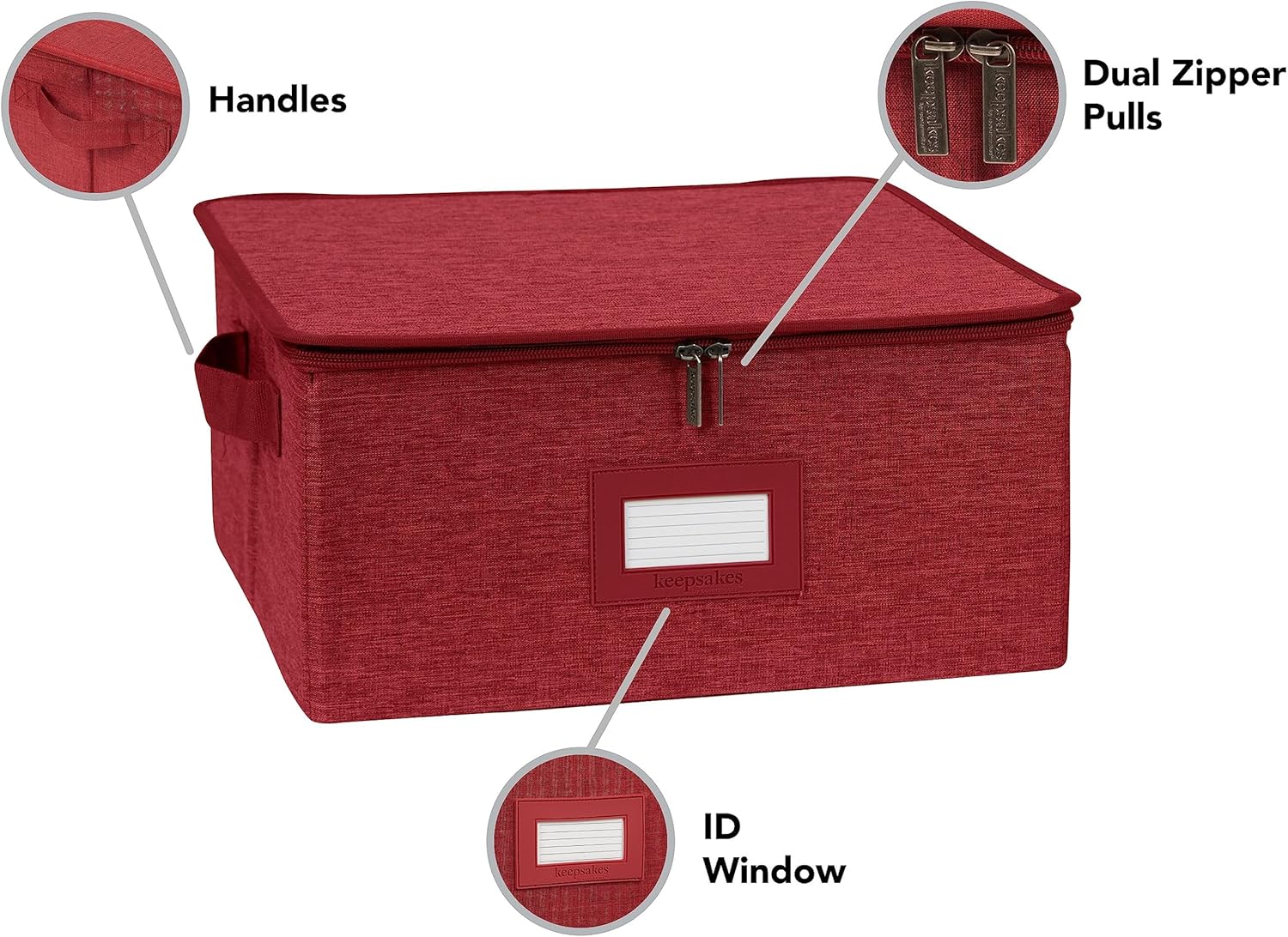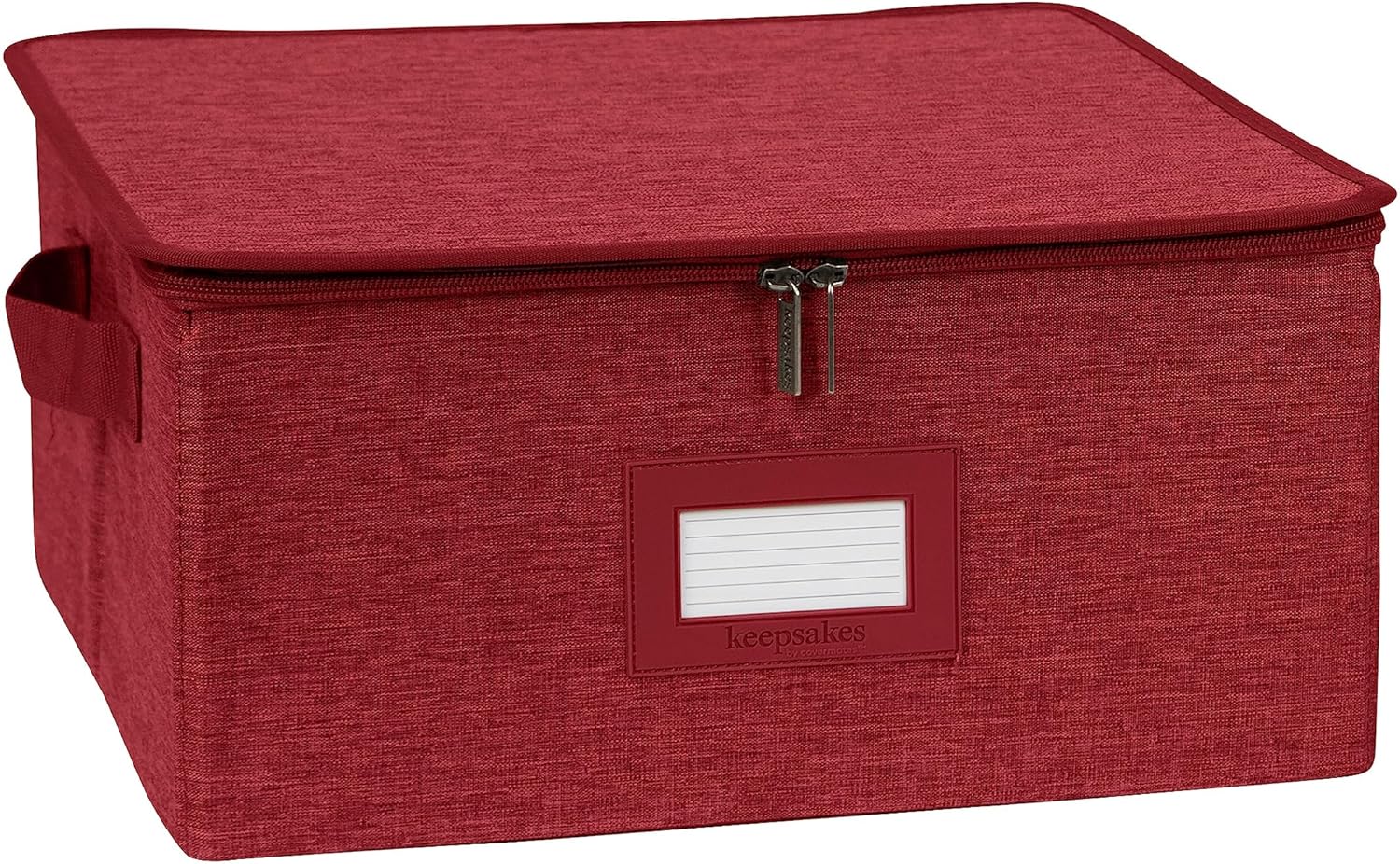 Covermates Keepsakes Dish Storage Box - Stackable, Reinforced Handles, China Storage, Red Heather
