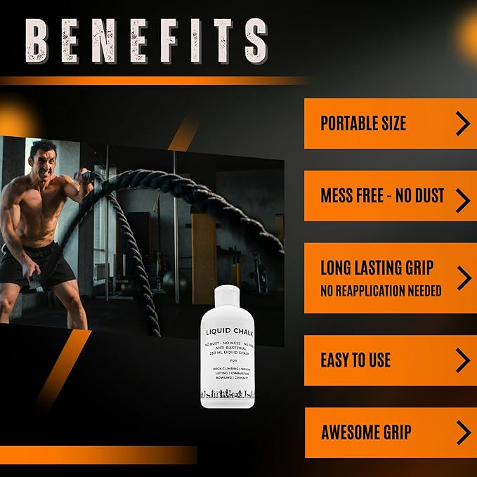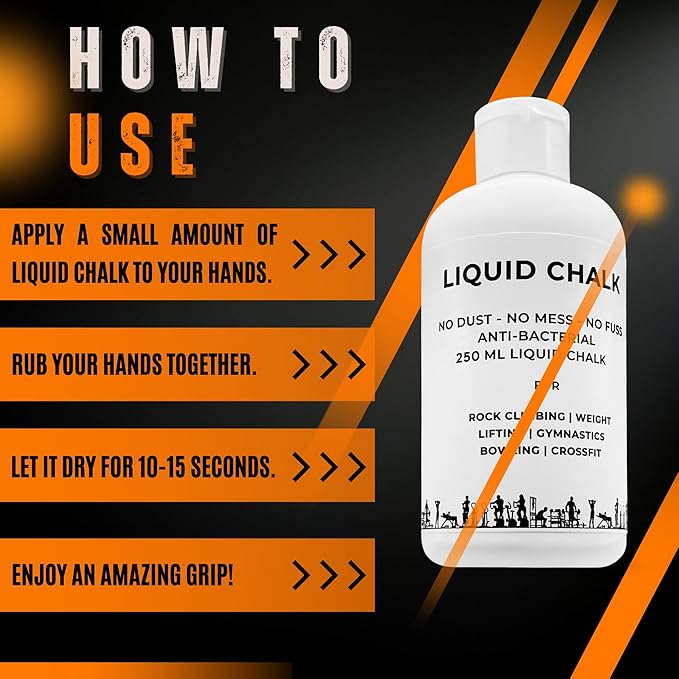 - Mess-Free Application: Say goodbye to the mess and hassle of traditional chalk! convenient Liquid Chalk allows for precise application without any residue or chalk dust. Simply squeeze in your hand and apply a small amount to your palms, rub them together, and experience the effortless glide that. Liquid Chalk offers a mess-free alternative, providing superior grip and performance for athletes in various fields, from powerlifting to climbing and gymnastics.