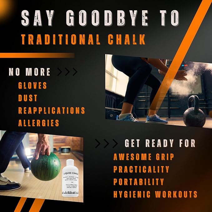 - Ultimate Grip Enhancement: Liquid Chalk offers unparalleled grip enhancement, giving you an unbeatable advantage during intense sports activities. Its advanced formula instantly dries to form a long-lasting, non-sticky, and moisture-absorbing layer on your hands, providing superior grip and control over equipment, weights, and surfaces. Enhance your fitness journey with a range of complementary products. From bowling balls and racks to weight and workout.