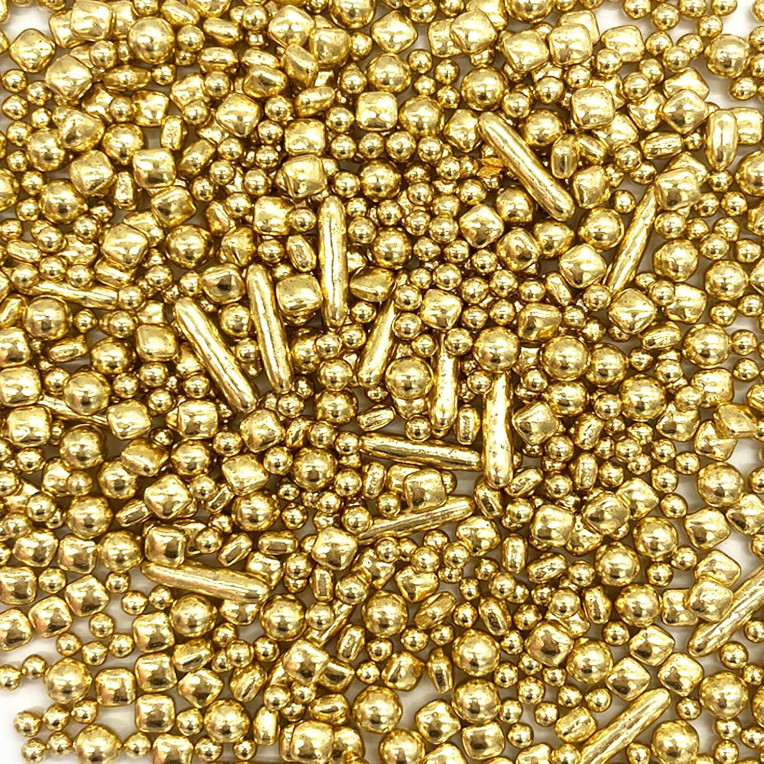 Weraru Edible Gold Sprinkles Pearl Mix Candy Mixing Size Baking Edible Cake Decorations Cupcake Toppers Cookie Decorating Celebrations Wedding Shower Party Chirstmas Supplies 130g/ 4.6oz