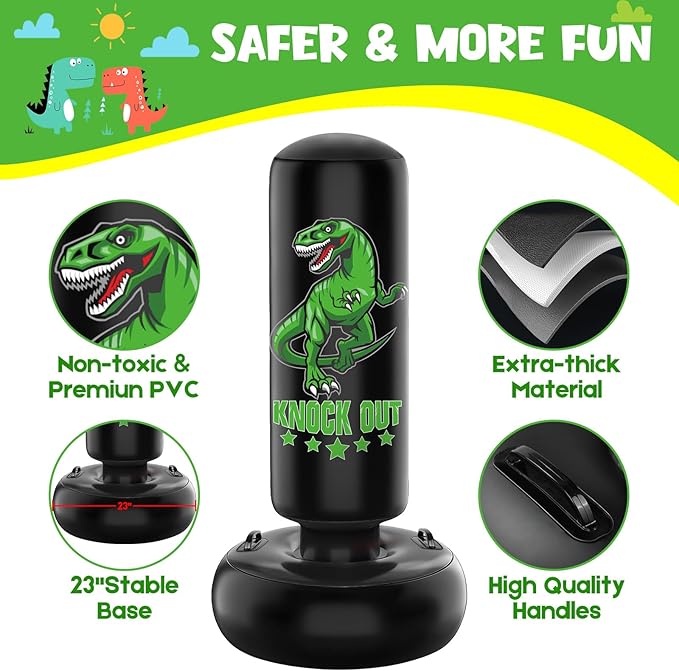 - Upgraded Thickened Material: The thickness increases of durability punching bag. Made of top quality, durable PVC material and has tested the strict test of ten thousand hits. it still keeps a smooth & seamless surface to avoid skin damage. The double-layer structure provides a better leak-proof in water & air so that you can have great time with your kids