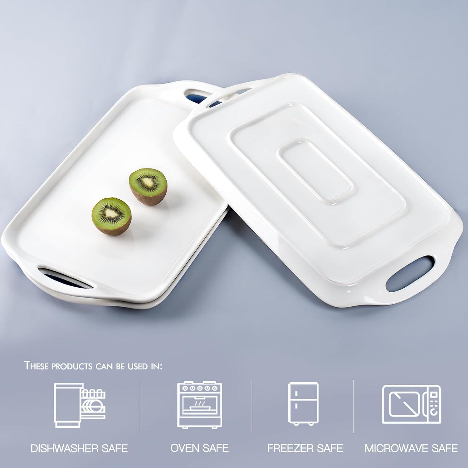 - LARGE CAPACITY SERVING TRAY SET: Ceramic trays measuring 16 x 9.5 x 1 inches, these serving trays have multiple uses. Not only can they be used to serve a variety of foods, they can also be used as storage containers, all of which can meet our various requirements.