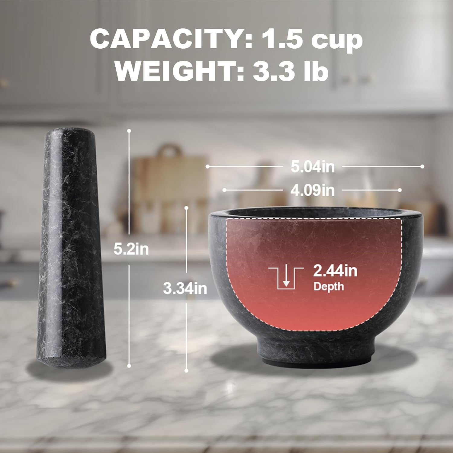 - 【Each Piece is one of a kind】The Mortar and Pestle is made of actual granite with rich crystals. Because the different distribution of natural stone crystals, each piece is one of a kind. It is heavy-duty and durable, both gorgeous and functional.