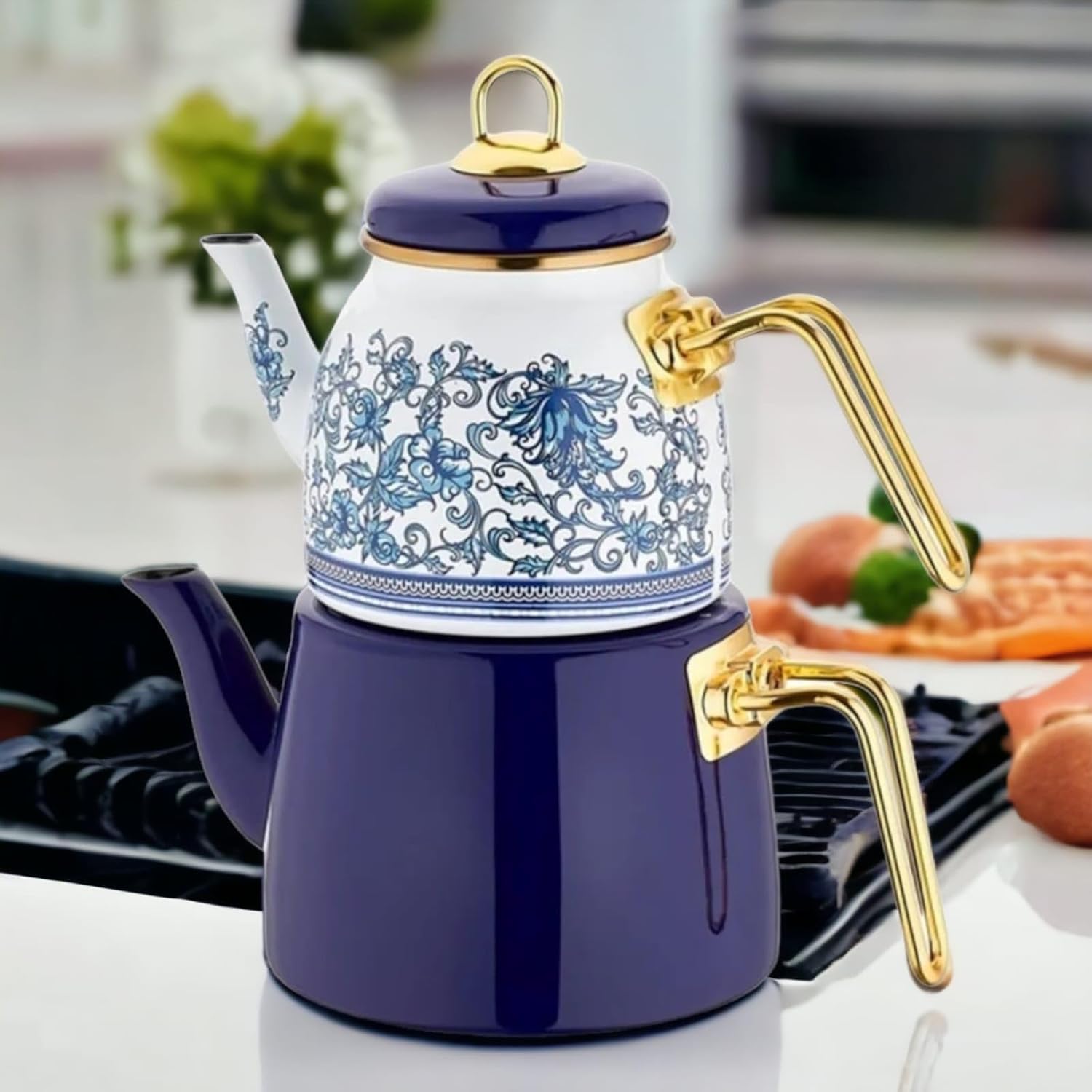 - MATERIAL: Made from sturdy enamel metal and this enamel tea kettle pot teapot set for stovetop is ideal for party birthday and gift for women wedding housewarming