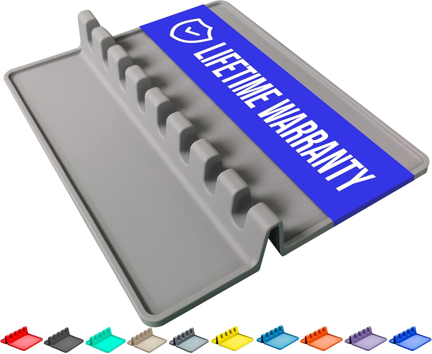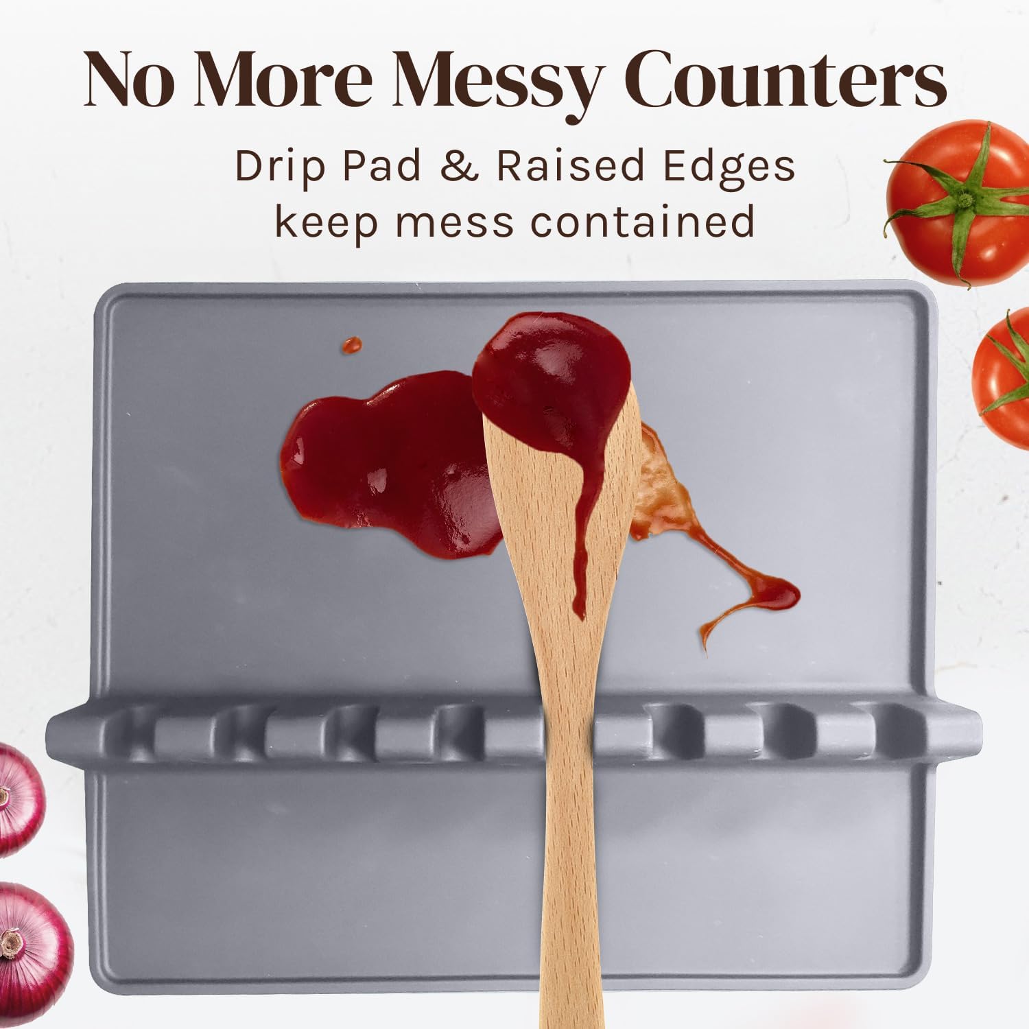 Silicone Spoon Rest for Stove Top with Drip Pad (1 Pack) - Extra Large Grey Heat-Resistant, BPA-Free Utensil Rest for Kitchen Counter - Utensil Holder for Spatulas, Tongs, Ladles and Kitchen Gadgets