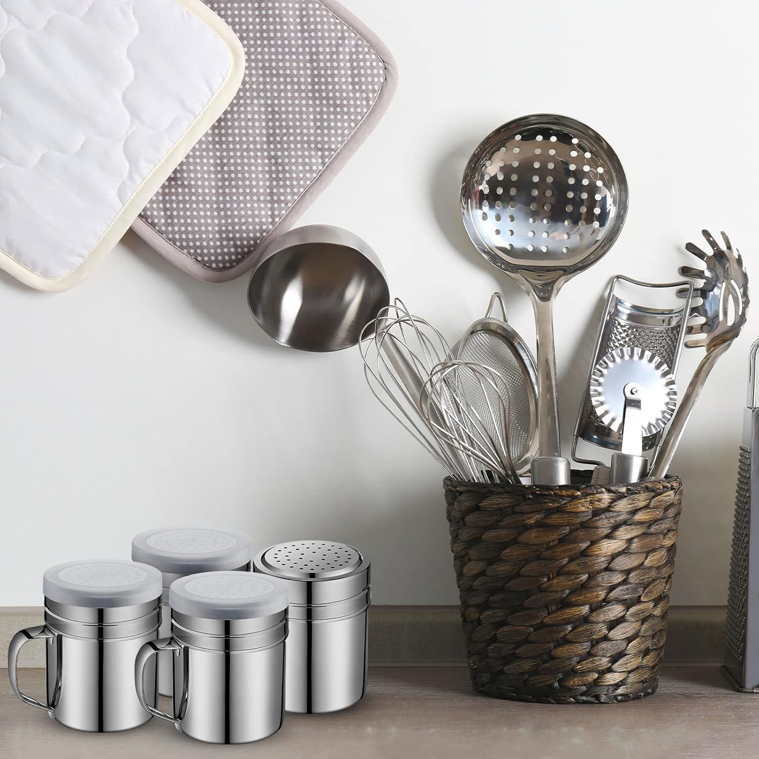 - Wide Application: the metal dredge shaker is versatile and can be applied to store various spices such as salt, pepper, sugar, flour, cinnamon powder, condiment and other fine grain seasonings, ideal for kitchens, restaurants, cafes and even bakery