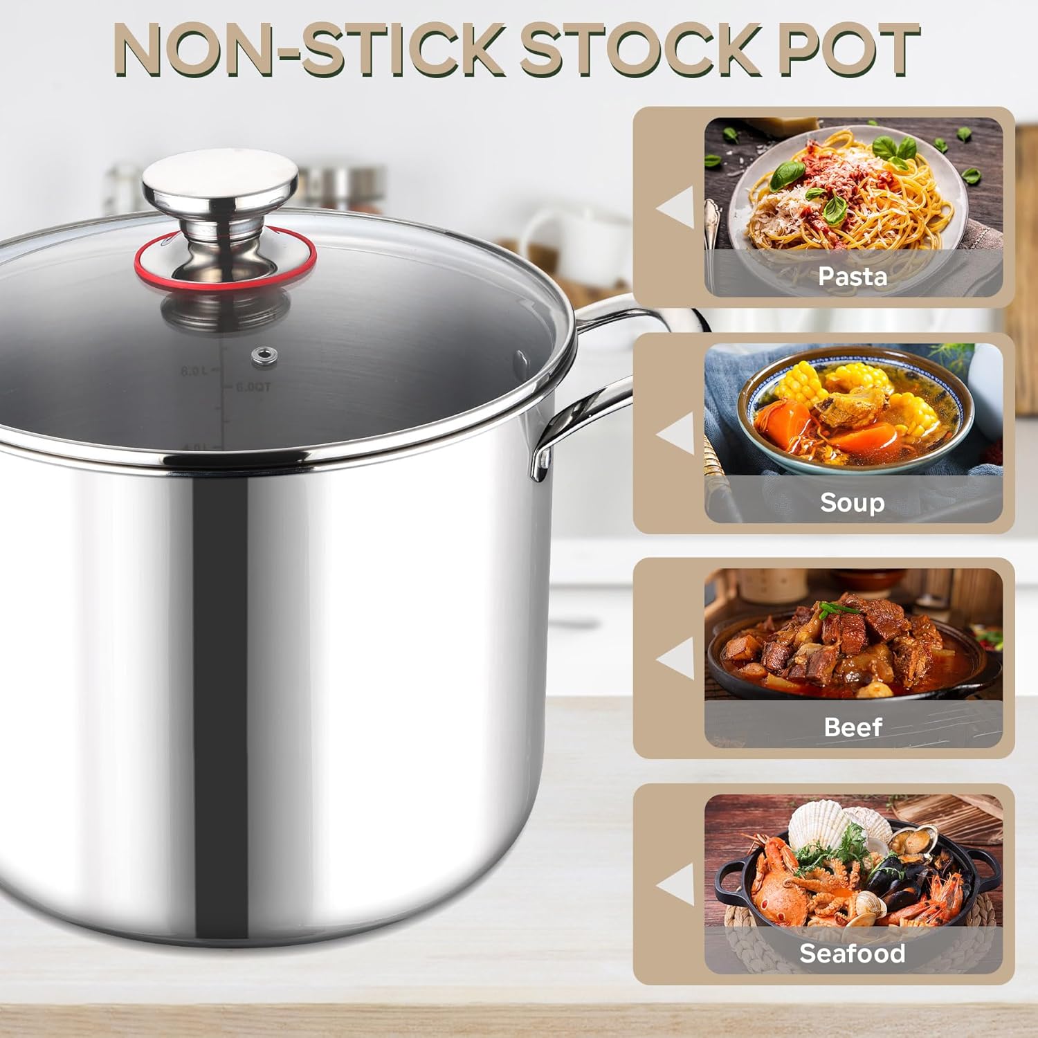 - Excellent Compatible Soup Stock, 10 quart nonstick seafood induction pot is work well on gas, electric, induction, and ceramic, you can use it as your soup pot, boiling pot, steamer pot, braising pot, saucepan, or cooking pot, it is perfect for making large batches of anything: pasta, soup, broths, lobster, crab, vegetables, 10qt large stainless steel stock pot is dishwasher safe help you save labor time, great for home daily use and enjoy healthier cooking
