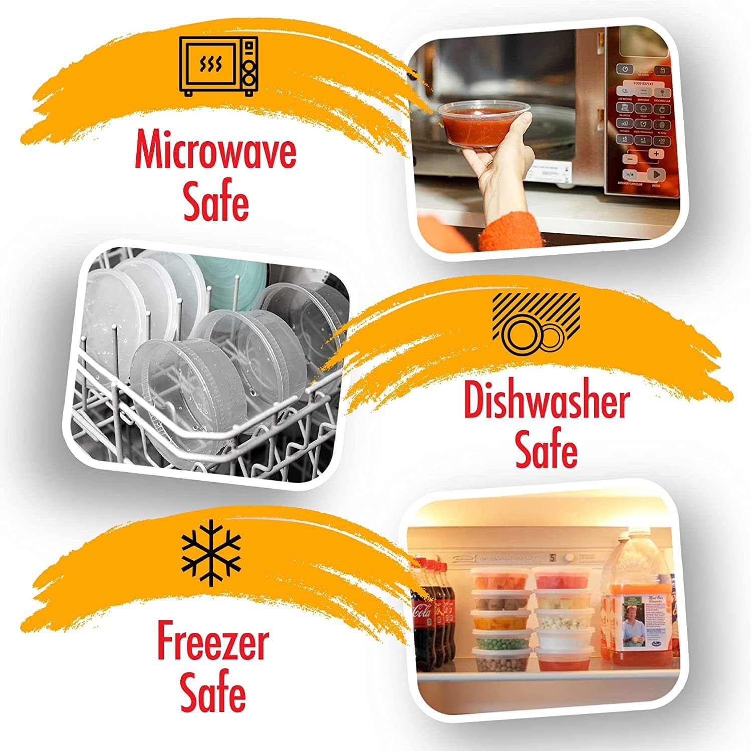 - Pack of 240 - Durable heavy duty, BPA free plastic container. Containers and lids are microwave-safe, freezer safe, dishwasher safe (top rack recommended), stackable, reusable and leak proof