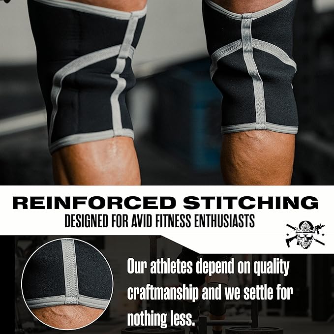Knee Sleeves for Weightlifting & Powerlifting (7mm Pair) For Men & Women - Knee Wraps for Weight Lifting, Squats, Fitness, Gym Workout, Crossfit - IPF Approved Knee Compression Sleeve Support